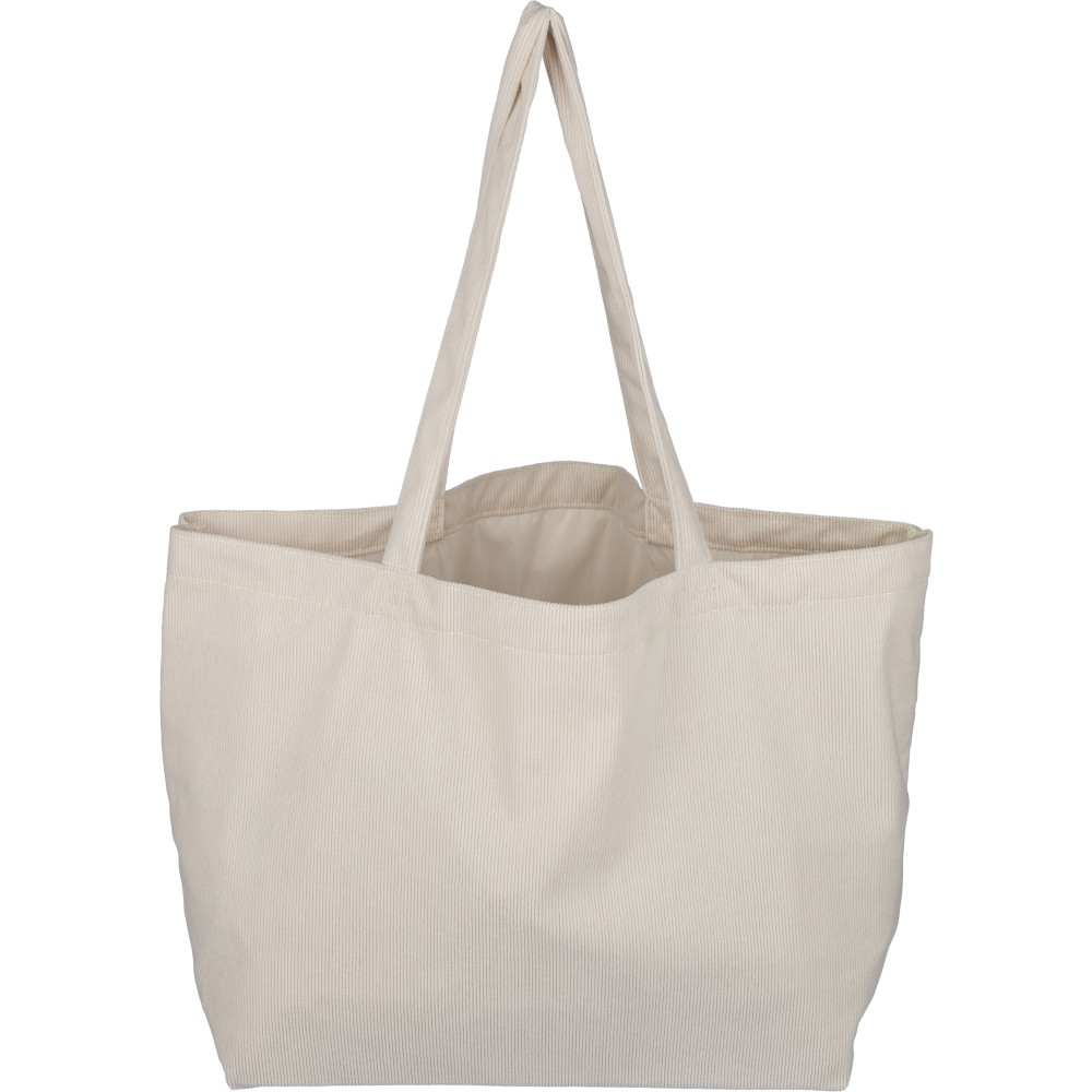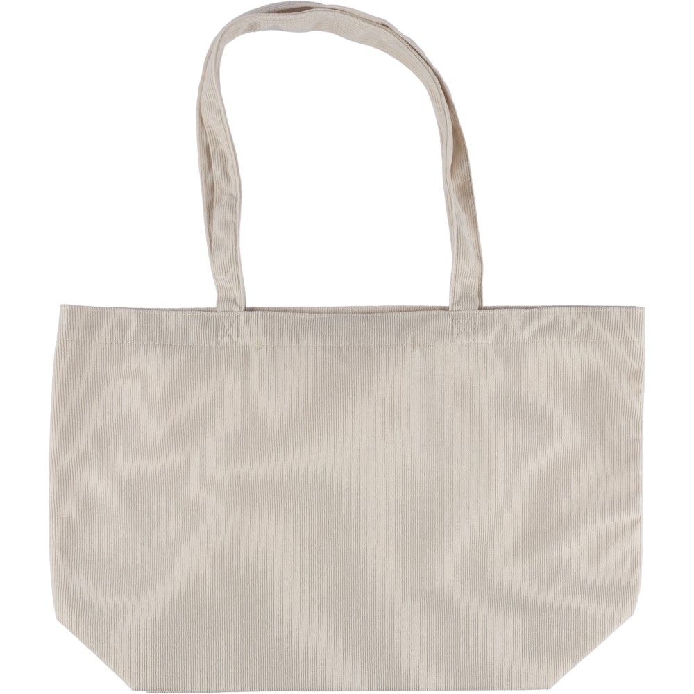 Kordbársony anyagból készült válltáska 2,5 × 60 cm hosszúságú fülekkel, 51 × 15 × 33 cm méretű tágas fő rekesszel és 10 × 10 cm méretű belső zsebbel. Mindennapi használatra alkalmas.