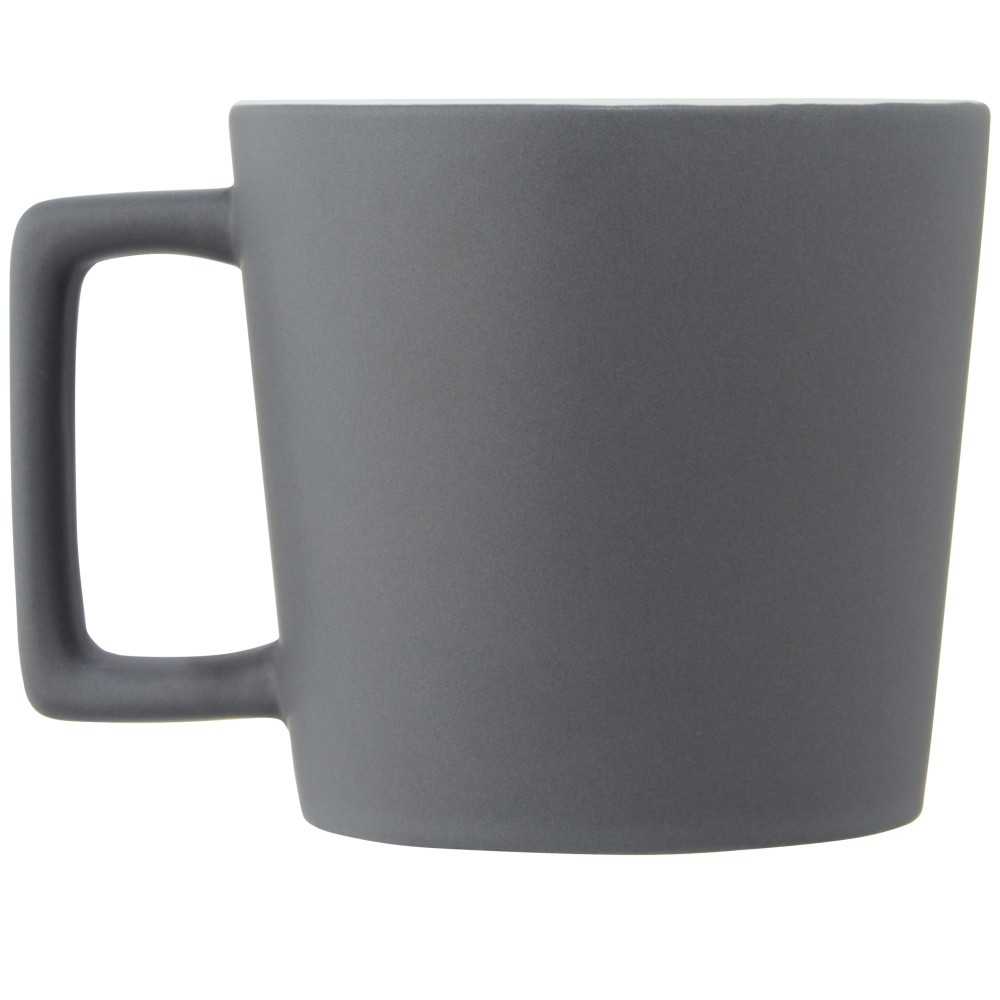 Kerámia bögre modern dizájnnal és matt felülettel. Nem szivárgásmentes. Szénsavas italokkal is használható. Mosogatógépben mosható és mikrohullámú sütőben történő melegítésre alkalmas. Űrtartalom: 370 ml. Újrahasznosított karton díszdobozban. Emblémázás: Bögredekor, Matricázás