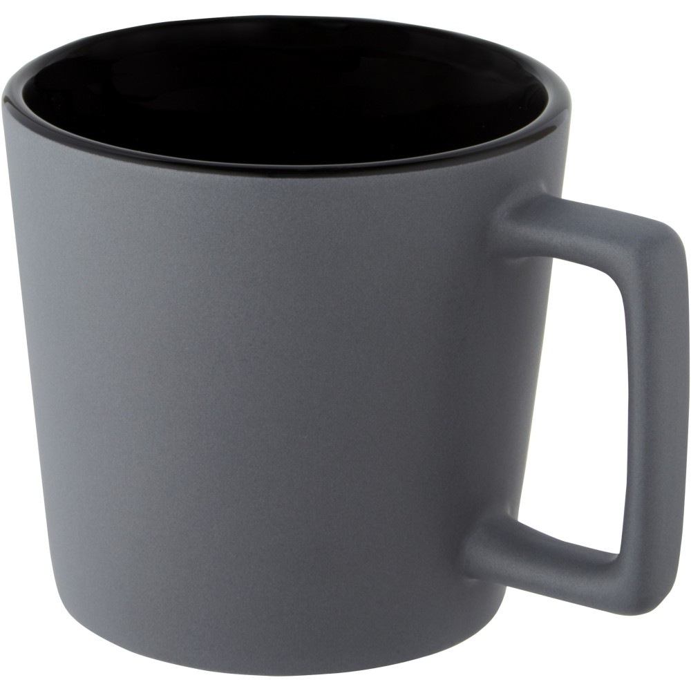 Kerámia bögre modern dizájnnal és matt felülettel. Nem szivárgásmentes. Szénsavas italokkal is használható. Mosogatógépben mosható és mikrohullámú sütőben történő melegítésre alkalmas. Űrtartalom: 370 ml. Újrahasznosított karton díszdobozban. Emblémázás: Bögredekor, Matricázás