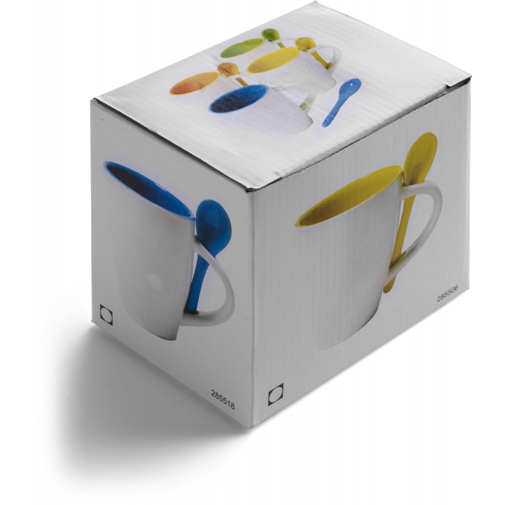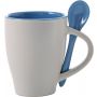 Kerámia bögre kiskanállal, 260 ml. Mosogatógépbe és mikrohullámú sütőbe helyezhető. A dobozt tartalmazza az ár. Emblémázás: Bögredekor