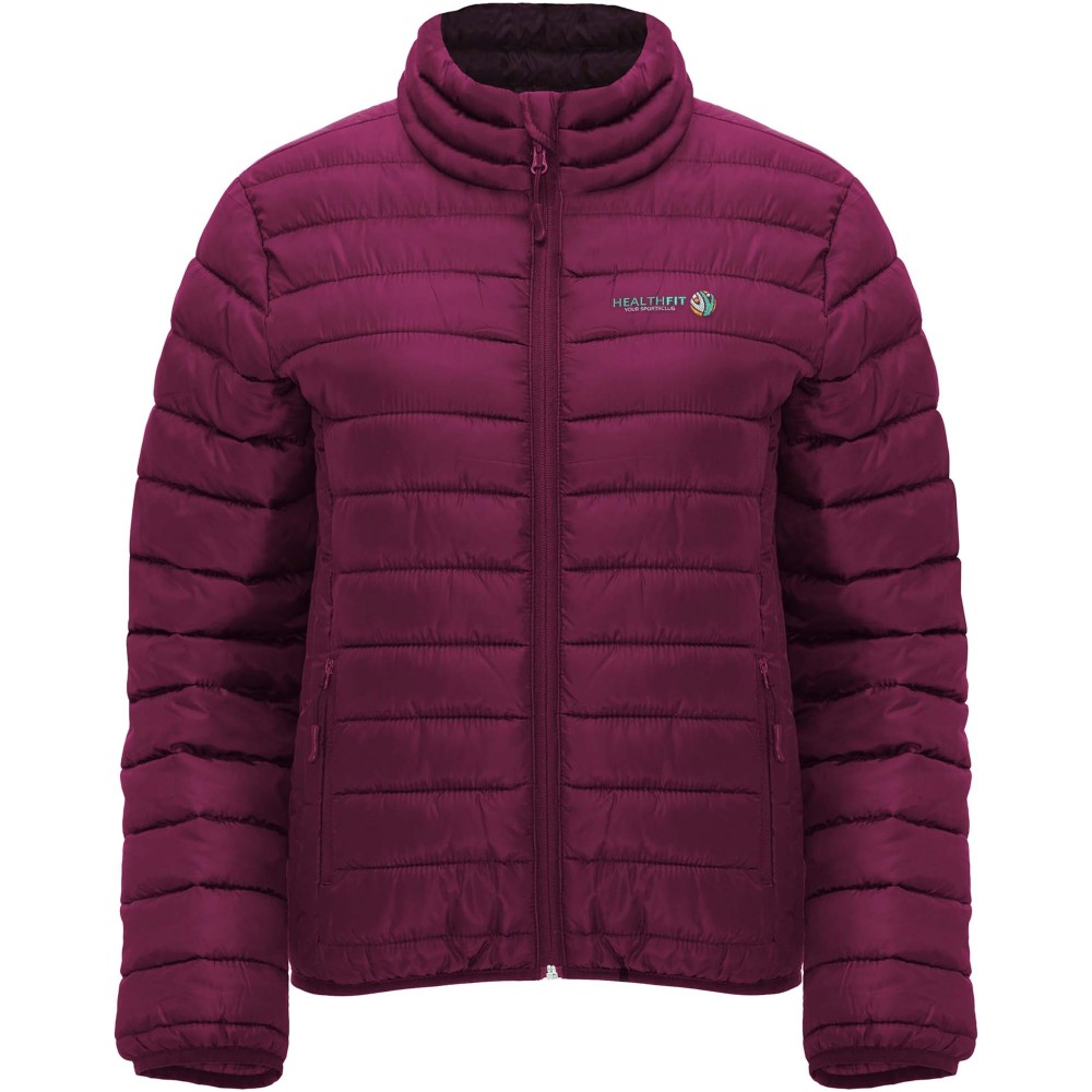 Női, karcsúsított, steppelt dzseki tollszerű tapintású töltettel, tasakkal. Fordított cipzárak, színben illeszkedő állvédővel és cipzárral. Két cipzáras elülső zseb. Gumis szegély a galléron, a kézelőn és az aljon. Kontrasztos színű bélés. Könnyű és összehajtható ruhadarab. Vízálló. Szélálló. 100% poliészter, 290 g/m2. Bélés és töltet: 100% poliészter. Emblémázás: Hímzés