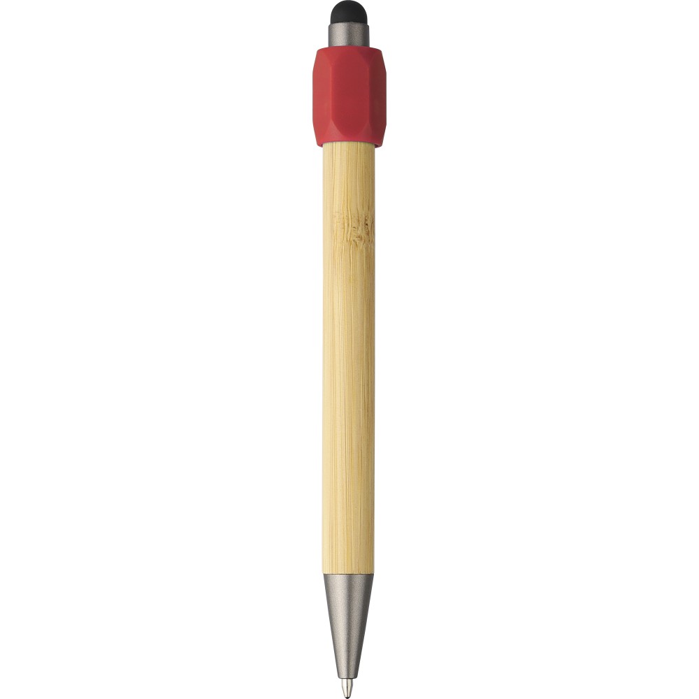Bambusz golyóstoll újrahasznosított ABS pörgettyűvel és fekete érintővel a nyombógombon. A tollhegy vastagsága 1.0 mm, íráshossz: kb. 800 méter. Az újrahasznosított anyagra utaló logó a tollra van gravírozva. Emblémázás: Gravírozás, Tamponnyomás