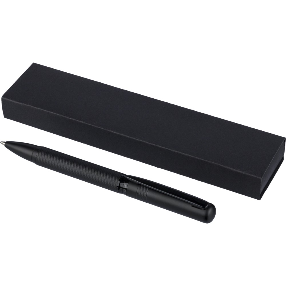 Ólommentes, környezetbarát Ecobrass rézötvözetből készült csavarós golyóstoll a toll színével harmonizáló fém klippel és forgó mechanizmussal. Kék színű, német Dokumental tollbetéttel felszerelve, megközelítőleg 1 000 méter íráshosszal. Darabonként fekete tolódobozba csomagolva.