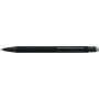 Újrahasznosított alumínium golyóstoll fekete, gumírozott felülettel és kék tollbetéttel. Színben illeszkedő kiegészítőkkel ? beleértve a belső tolltestet és az érintőképernyőkhöz használható stylus véget ?, amelyek kifinomult kontrasztot alkotnak gravírozáskor. Nyomógombos szerkezettel és gravírozott újrahasznosított logóval.