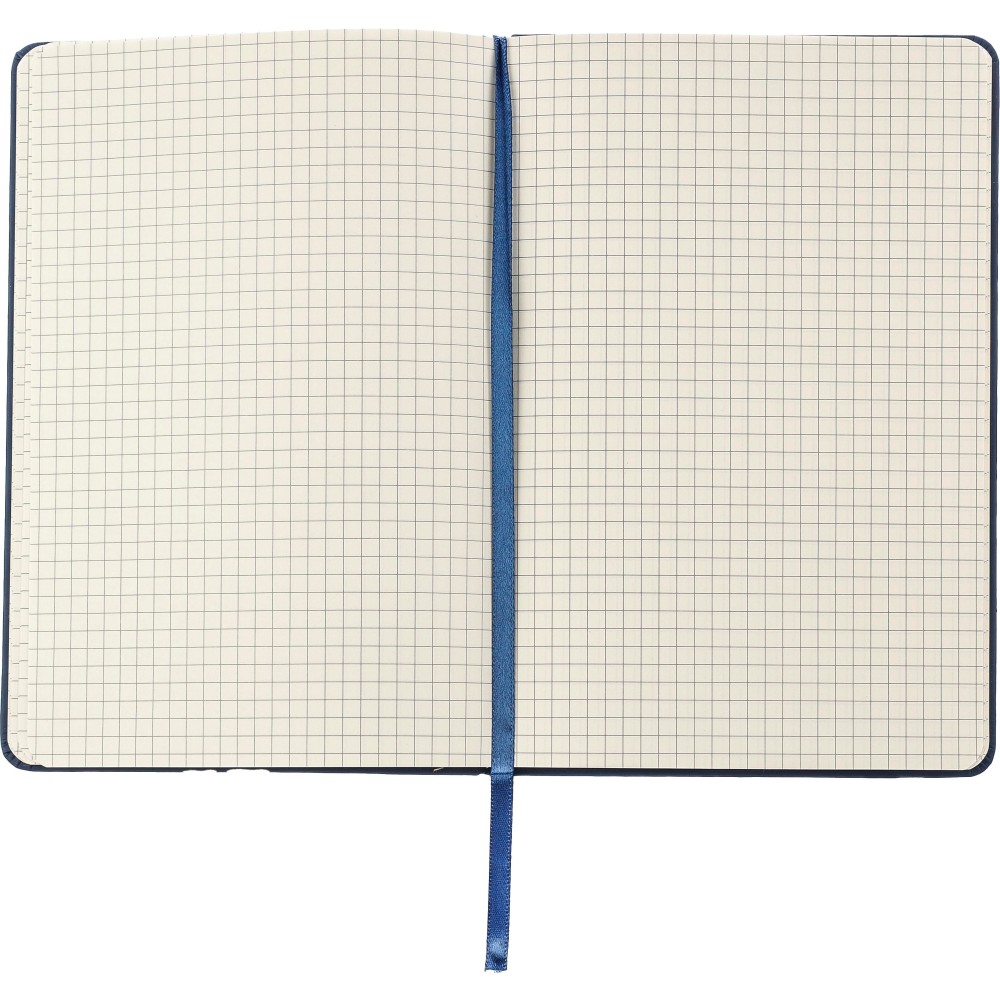 PU jegyzetfüzet (kb. A5 méret) 96 lapos, margó nélküli, 5 mm-es négyzetráccsal. Könyvjelző szalag és gumis záródás. Emblémázás: Tamponnyomás, UV nyomtatás
