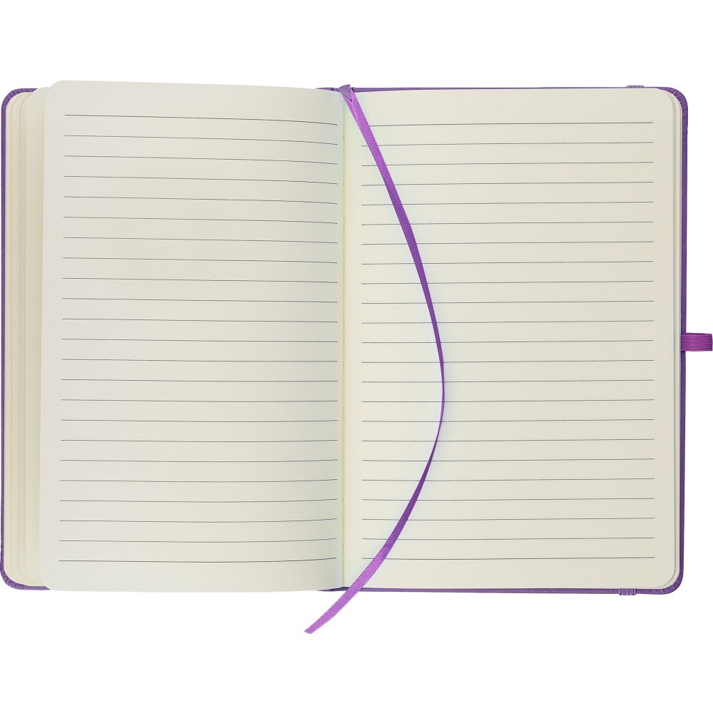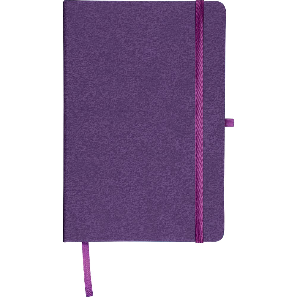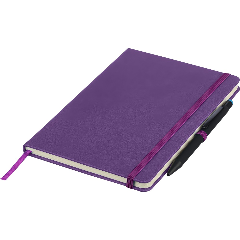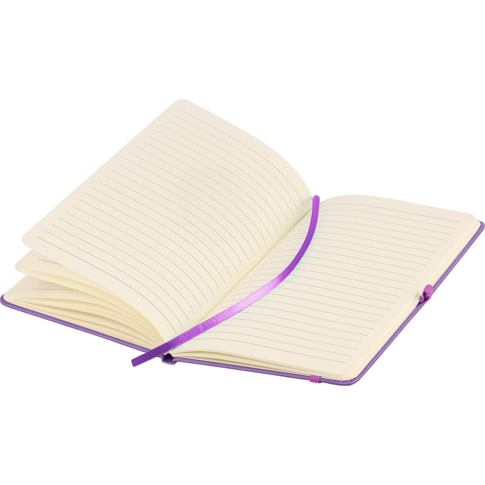 A5-ös jegyzetfüzet újrahasznosított kemény PU borítóval, a hátoldalán dombornyomott újrahasznosított logóval. Tartós és rugalmas anyagból készült, amely kényelmes fogást, párnázottságot és hosszan tartó használatot biztosít. A borító lézergravírozásra alkalmas, amely során finom, tone-on-tone (színazonos) hatás érhető el. 80 vonalas, 70 g/m2 súlyú lapot tartalmaz, színben illeszkedő gumírozott rögzítőpánttal, könyvjelző szalaggal és tolltartó hurokkal. A füzetben használt papír FSC Mix tanúsítvánnyal rendelkezik.