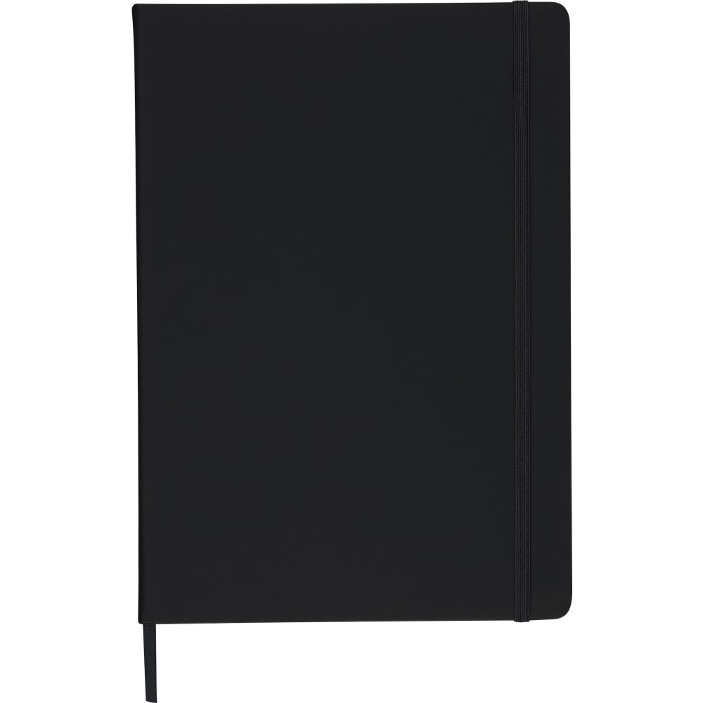 A4-es jegyzetfüzet élénk színű, újrahasznosított anyagból (PU) készült kemény borítóval. 96 db kétoldalas, vonalas lapot tartalmaz (6 g/m2), 0,7 cm-es vonalközzel, az elején és a végén két-két üres oldallal. A füzetben használt papír FSC Mix tanúsítvánnyal rendelkezik. Színben illeszkedő gumírozott rögzítőpánttal, beépített könyvjelző szalaggal és a hátoldalán dombornyomott újrahasznosított PU logóval ellátva.