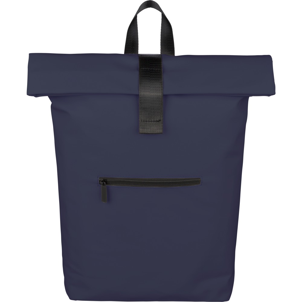 Újrahasznosított PU anyagból készült hátizsák 19 literes űrtartalommal, rolltop záródással és tépőzáras rögzítéssel. Elülső cipzáras zsebbel, 16 hüvelykes laptoprekesszel, 210D újrahasznosított béléssel, állítható szellőző vállpántokkal és felső fogantyúval rendelkezik. A belső címkén újrahasznosított alapanyagra utaló jelölés található. Emblémázás: Szitanyomás