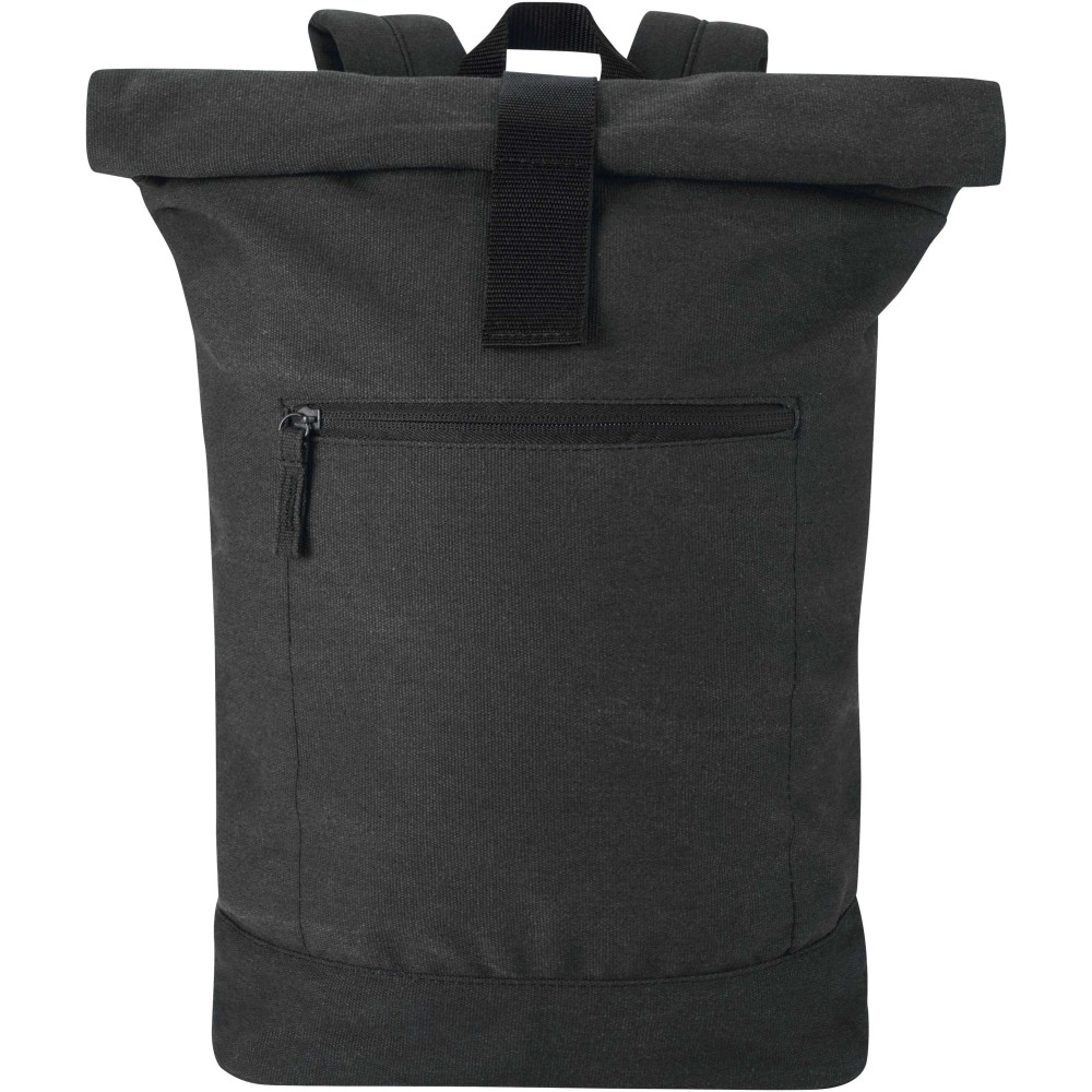A Recanvas roll-top hátizsák GRS tanúsítvánnyal rendelkező, újrahasznosított és vízlepergető vászonból készült, színben harmonizáló RPET béléssel. A 16 literes űrtartalmú táska egy párnázott rekesszel rendelkezik a legfeljebb 14"-os laptopok számára, emellett egy cipzáras elülső zsebbel, légáteresztő hálós hátrésszel és a kényelmet szolgáló állítható vállpántokkal van felszerelve. A bővíthető roll-top záródás lehetővé teszi a tárolókapacitás növelését igény szerint, ami ideálissá teszi ingázáshoz, utazáshoz vagy szabadtéri kalandokhoz.