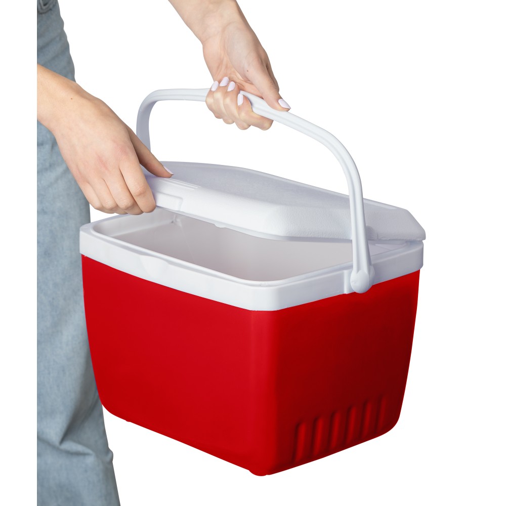 Hűtőláda 13 literes kapacitással, belső és külső borítással, tetővel és szigetelőréteggel ellátva. Tartós, könnyű anyagokból (PU/PE) készült, amelyek ellenállnak a nedvességnek, a vegyszereknek és a mindennapi igénybevételnek. A tartalma 8-12 órán át hidegen, vagy 4-5 órán át melegen tartható. Kialakításának köszönhetően átlósan belefér egy 1,5 literes üdítőspalack. Erős fogantyúval rendelkezik a könnyű szállítás érdekében.