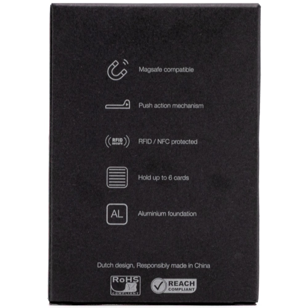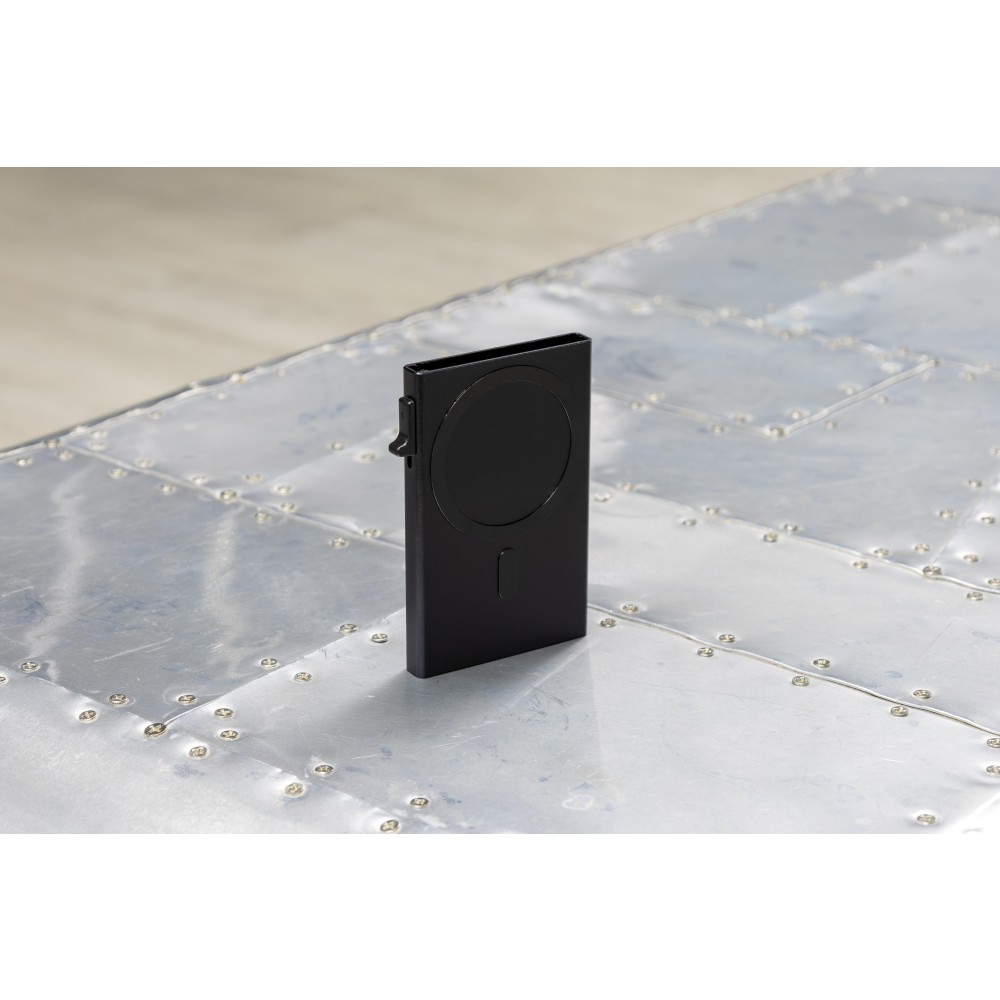 A BrandCharger Wally Mag RFID kártyatartó elegáns kialakítású, RFID/NFC védelemmel rendelkezik, legfeljebb 6 darab kártya számára. Gyors kioldást biztosító nyomógombos mechanizmussal van ellátva, valamint MagSafe kompatibilis, így könnyen rögzíthető. Kompakt, biztonságos kialakítású, mindennapi használatra ideális. Emblémázás: Gravírozás