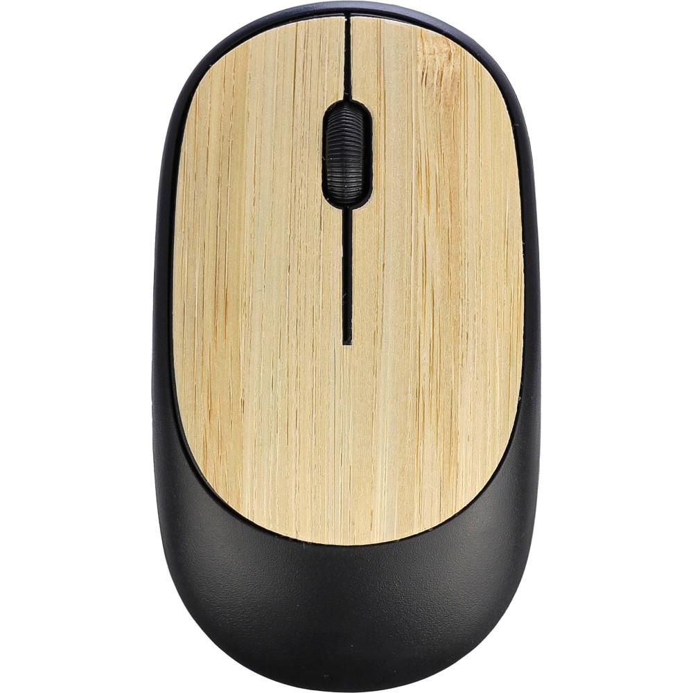 Vezeték nélküli egér bambusz részletekkel, 2,4 GHz USB vevővel és 1 200 DPI felbontással. Az elemet tartalmazza. Egyenként barna kartondobozba csomagolva. Anyaga: ABS. Emblémázás: Tamponnyomás