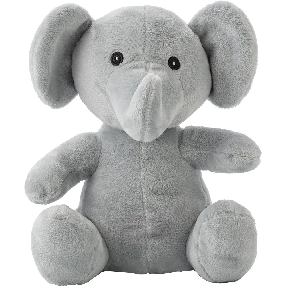 Plüsselefánt hímzett szemekkel, orral és szájjal. Csak a mellékelt címke emblémázható. Emblémázás: Tamponnyomás