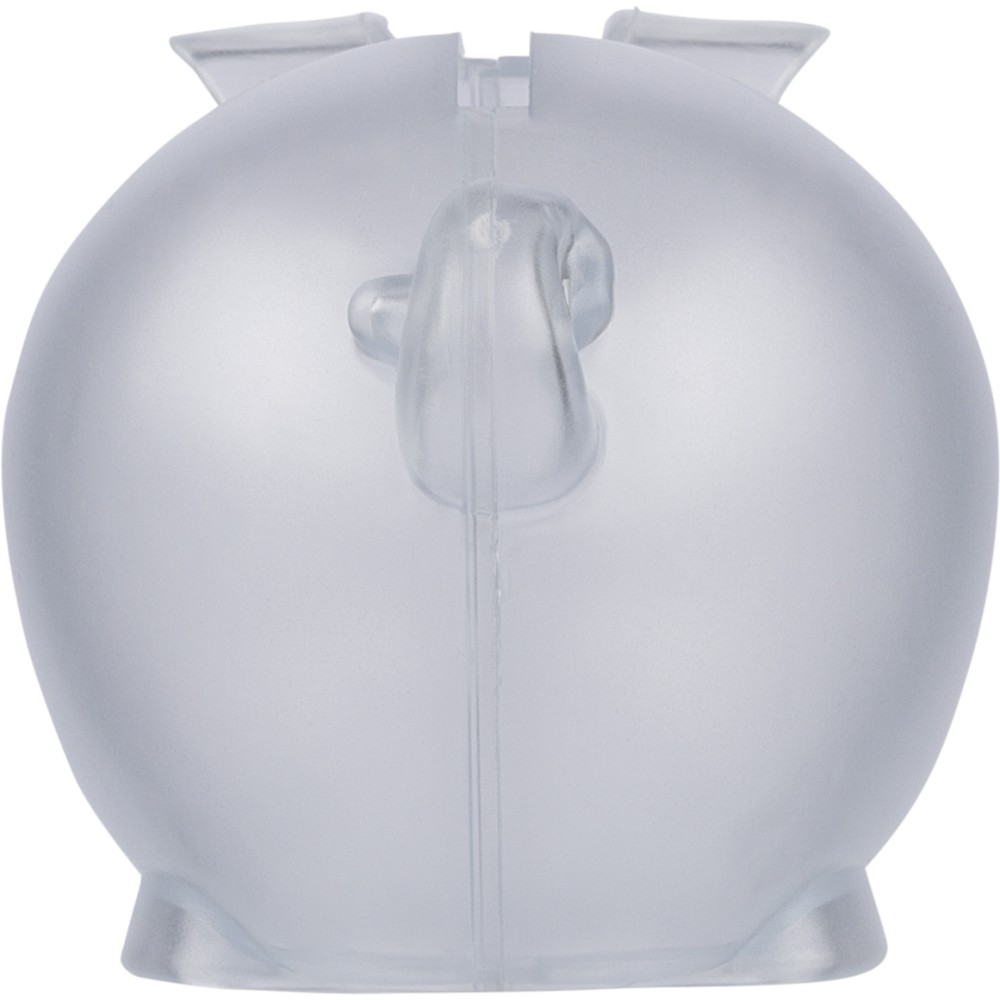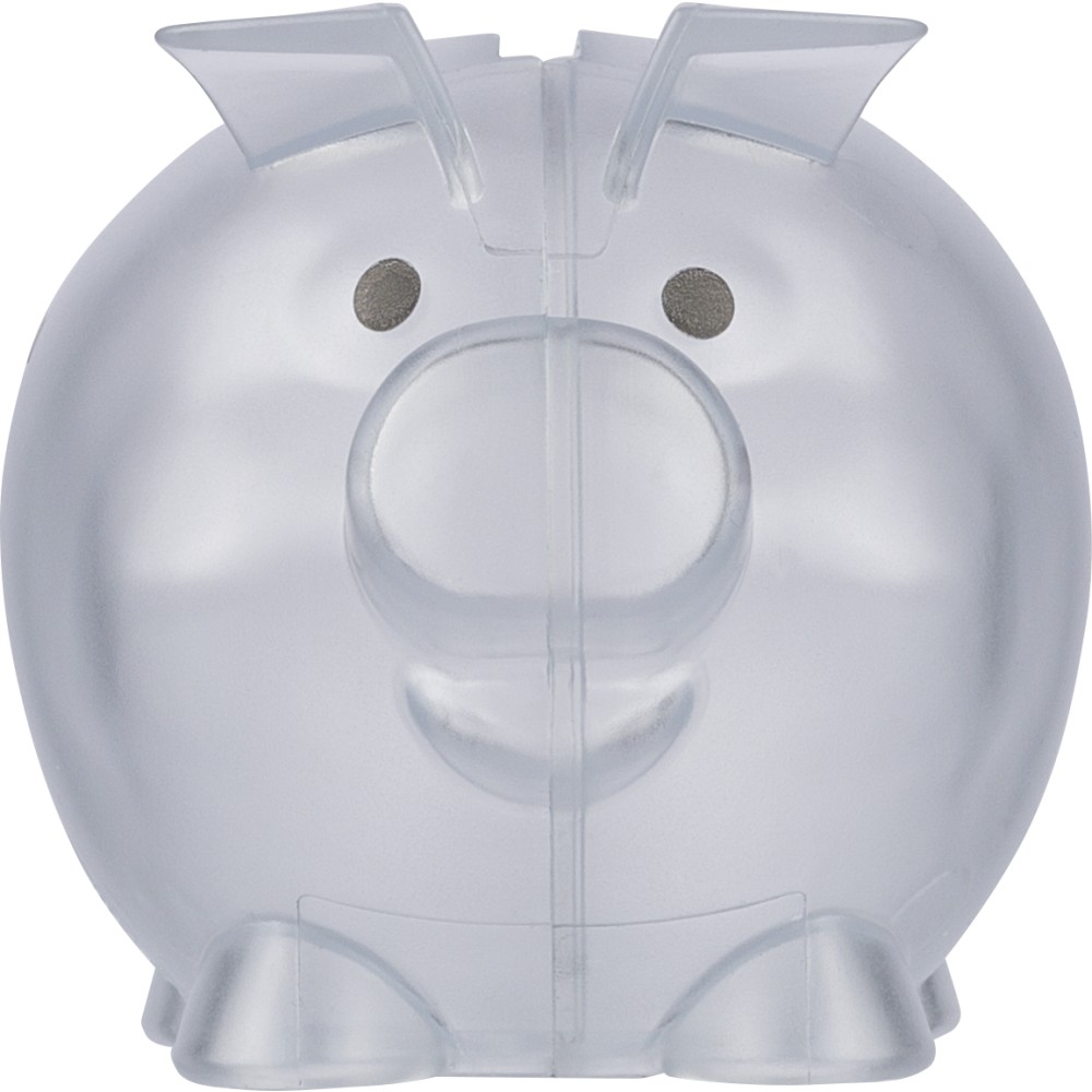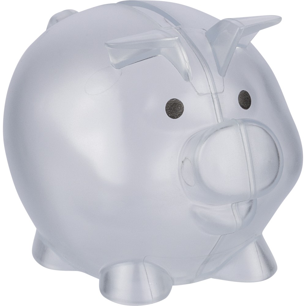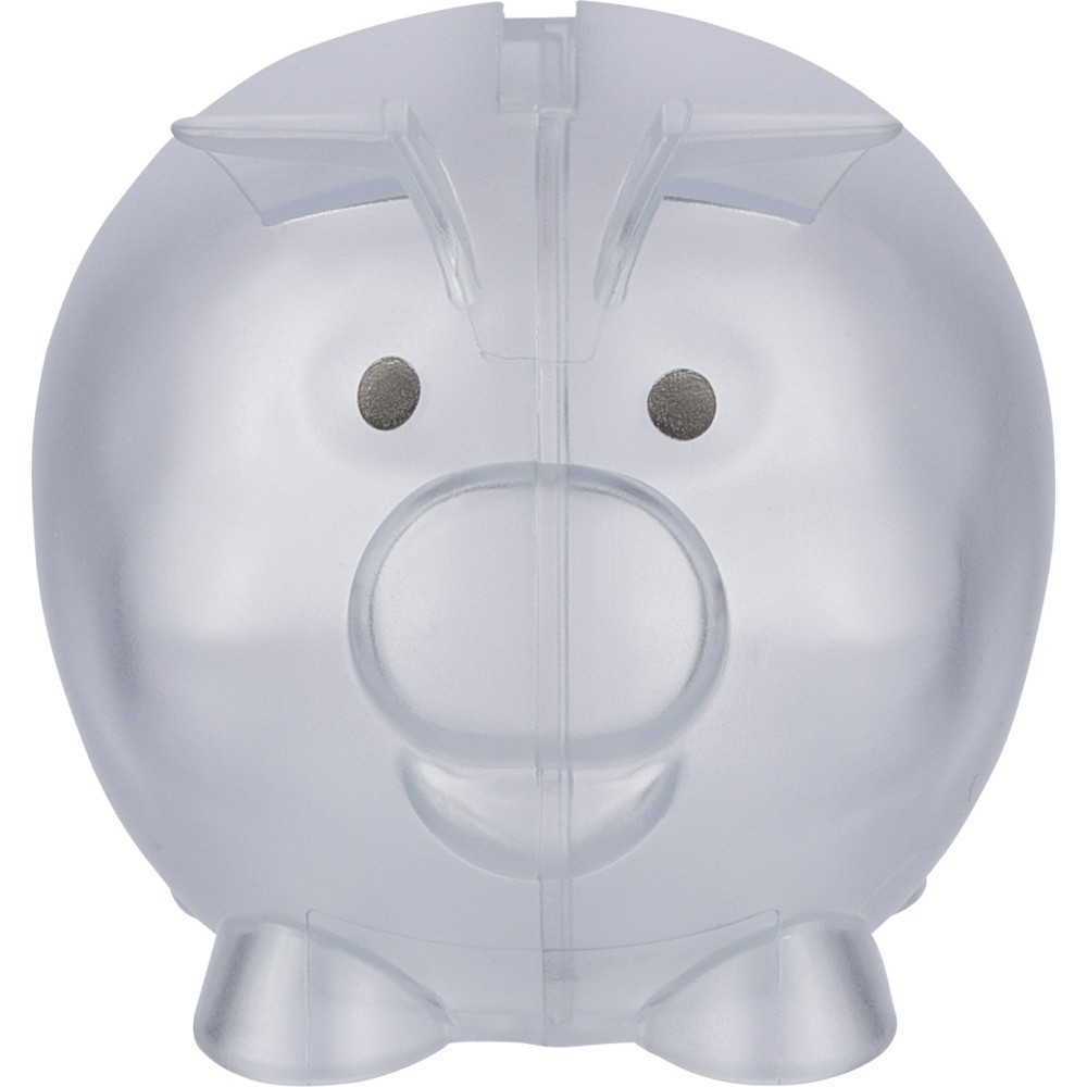 Újrahasznosított PS műanyagból készült, malacpersely. A hátoldalon recycled (újrahasznosított) alapanyagra utaló logó található. Emblémázás: Tamponnyomás