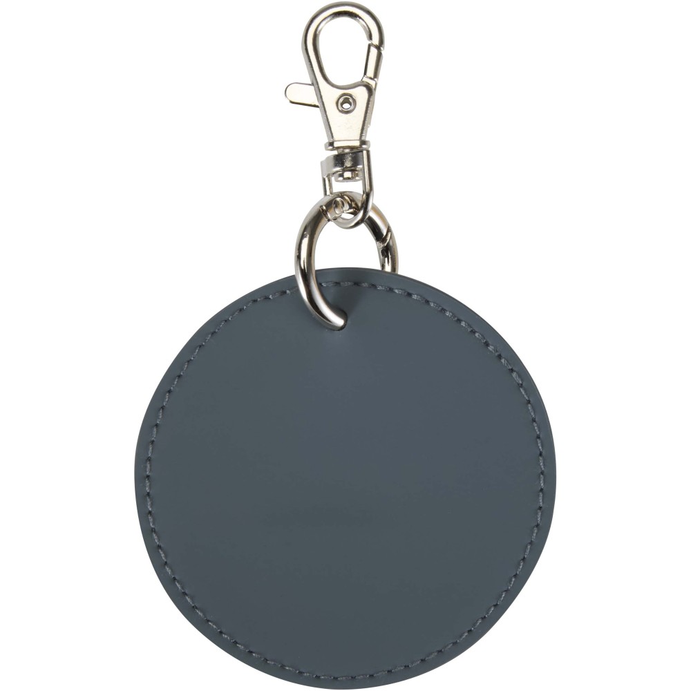Ez a prémium minőségű, újrahasznosított PU bőrből készült kerek, felcsatolható táskadísz kifinomult kiegészítője a mindennapi használati tárgyaknak. A 7,5 cm átmérőjű medál ideális választás táskák vagy kulcscsomók díszítésére. A könnyű, mégis tartós kiegészítő ötvözi a letisztult stílust a környezettudatos anyagválasztással.