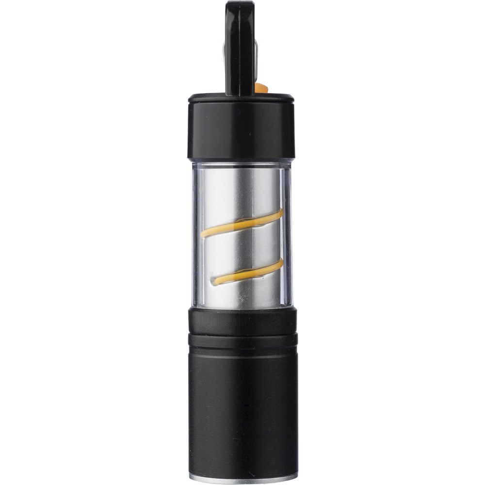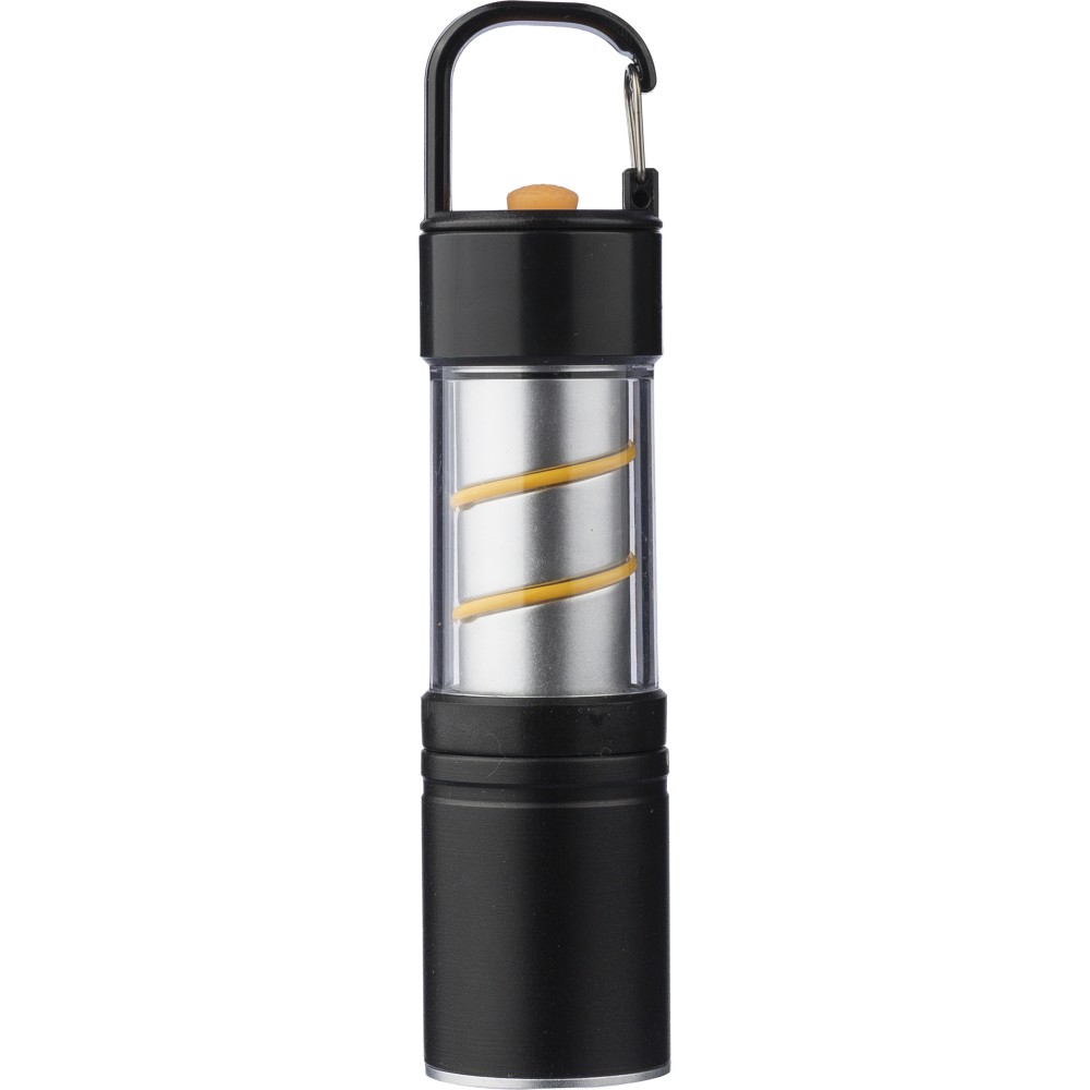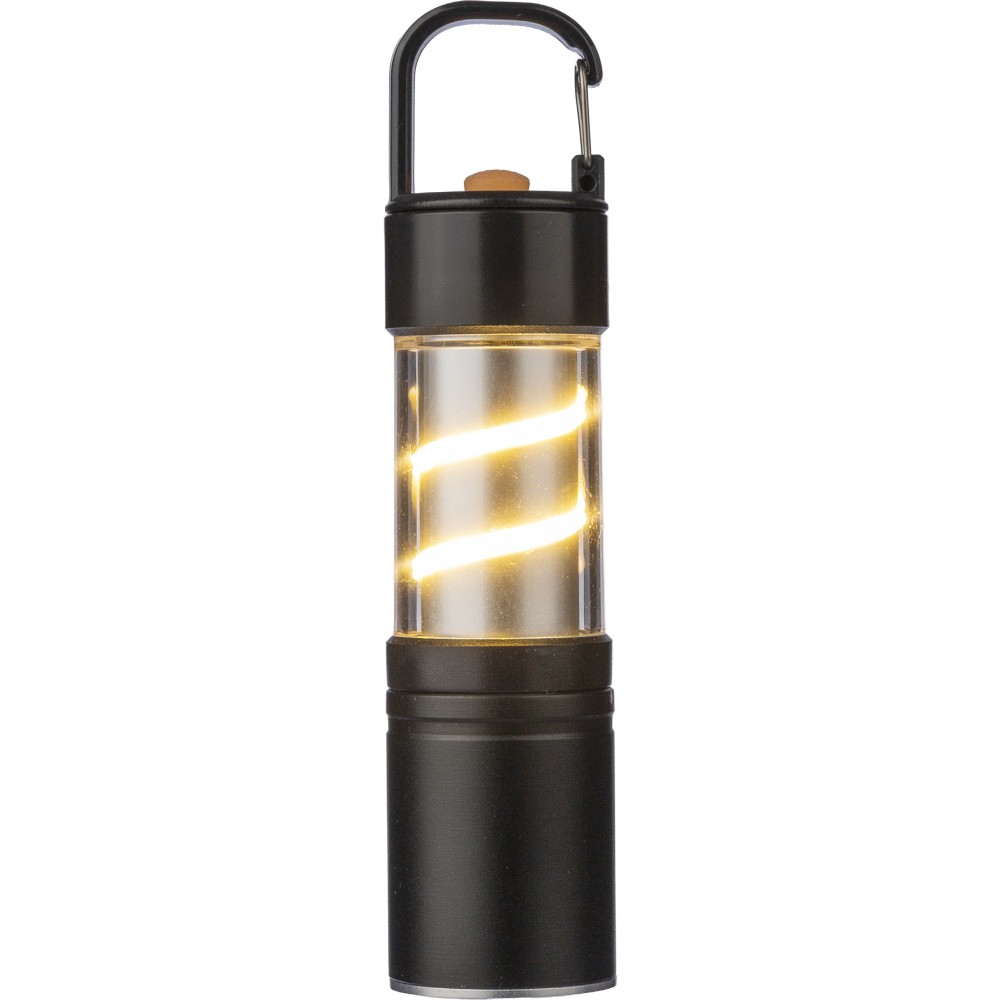 Alumínium és ötvözet COB zseblámpa ABS burkolattal, fém klipsszel és fekete karabinerrel. 3 világítási funkcióval, zoom móddal, nyomógombbal és mágneses talppal. 500 mAh-s lítium-ion akkumulátorral működik, C típusú töltéssel. 30 cm-es fekete kábellel. Egyenként csomagolva, barna kartondobozban. Emblémázás: Gravírozás, Tamponnyomás