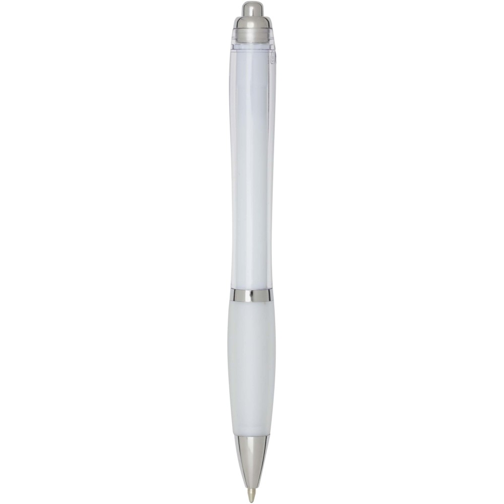 A Nash újrahasznosított műanyagból készült nyomógombos golyóstoll stílusos, ívelt kialakítású, áttetsző színes tolltesttel, ezüst díszítéssel és a tolltest színével megegyező, kényelmes írást biztosító puha fogórésszel rendelkezik. Az RCS tanúsítvánnyal rendelkező újrahasznosított ABS műanyagból készült termék segít csökkenteni a szűz alapanyagok felhasználását, miközben megőrzi tartósságát. A toll hátoldalán található rABS logó jelzi az újrahasznosított anyagösszetételt. Tinta színe: kék. Tollhegy mérete: 1.0 mm. Íráshossz: 1000 méter.