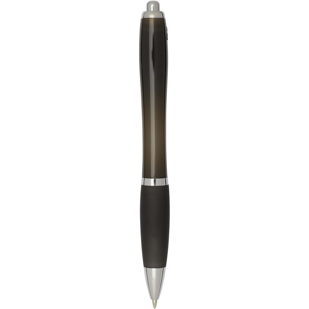 A Nash újrahasznosított műanyagból készült nyomógombos golyóstoll stílusos, ívelt kialakítású, áttetsző színes tolltesttel, ezüst díszítéssel és a tolltest színével megegyező, kényelmes írást biztosító puha fogórésszel rendelkezik. Az RCS tanúsítvánnyal rendelkező újrahasznosított ABS műanyagból készült termék segít csökkenteni a szűz alapanyagok felhasználását, miközben megőrzi tartósságát. A toll hátoldalán található rABS logó jelzi az újrahasznosított anyagösszetételt. Tinta színe: kék. Tollhegy mérete: 1.0 mm. Íráshossz: 1000 méter.