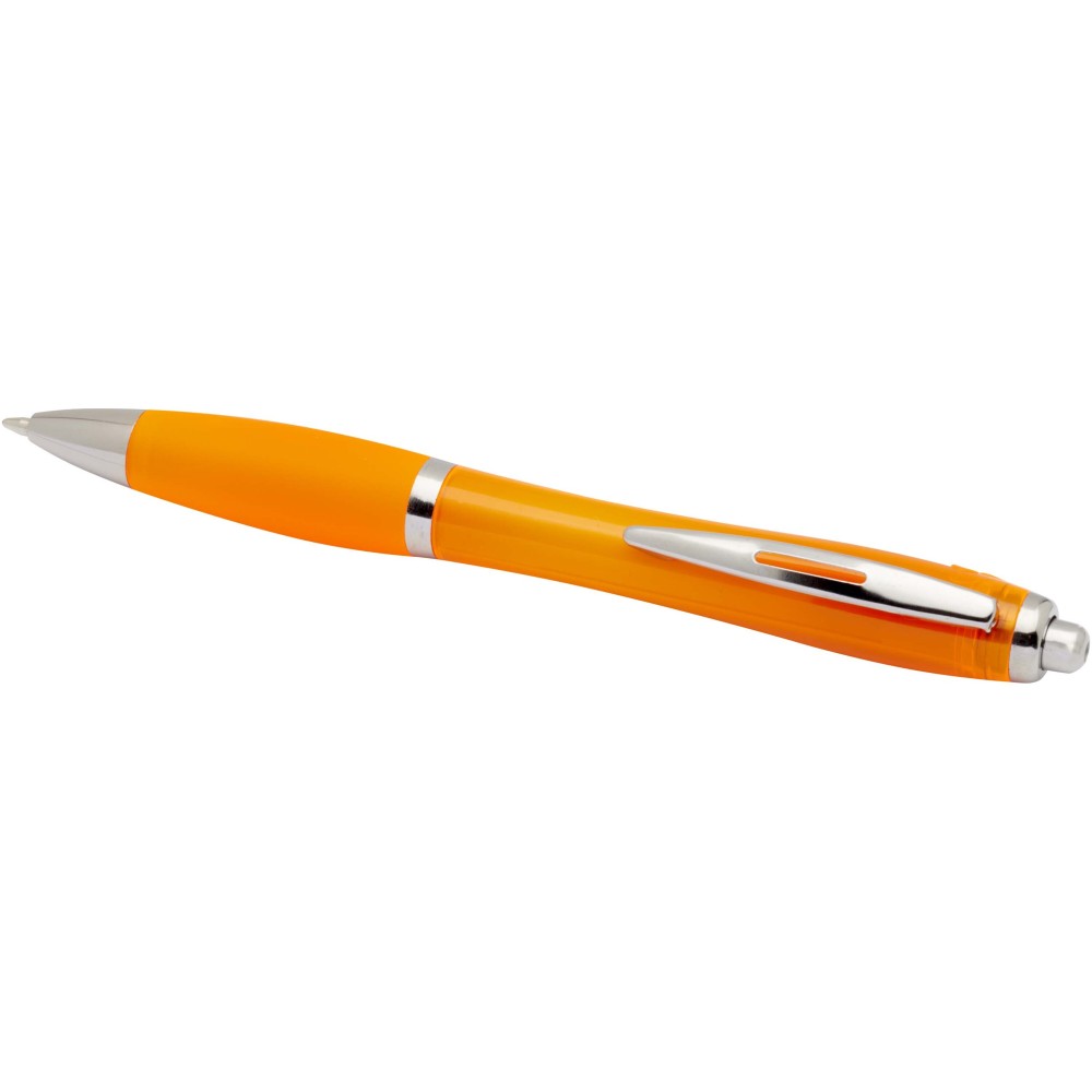 A Nash újrahasznosított műanyagból készült nyomógombos golyóstoll stílusos, ívelt kialakítású, áttetsző színes tolltesttel, ezüst díszítéssel és a tolltest színével megegyező, kényelmes írást biztosító puha fogórésszel rendelkezik. Az RCS tanúsítvánnyal rendelkező újrahasznosított ABS műanyagból készült termék segít csökkenteni a szűz alapanyagok felhasználását, miközben megőrzi tartósságát. A toll hátoldalán található rABS logó jelzi az újrahasznosított anyagösszetételt. Tinta színe: fekete. Tollhegy mérete: 1.0 mm. Íráshossz: 1000 méter.