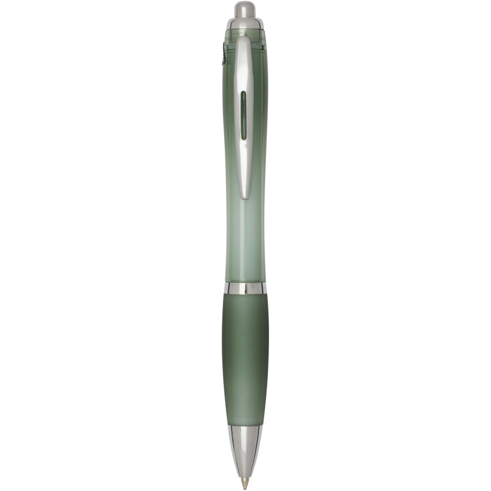 A Nash újrahasznosított műanyagból készült nyomógombos golyóstoll stílusos, ívelt kialakítású, áttetsző színes tolltesttel, ezüst díszítéssel és a tolltest színével megegyező, kényelmes írást biztosító puha fogórésszel rendelkezik. Az RCS tanúsítvánnyal rendelkező újrahasznosított ABS műanyagból készült termék segít csökkenteni a szűz alapanyagok felhasználását, miközben megőrzi tartósságát. A toll hátoldalán található rABS logó jelzi az újrahasznosított anyagösszetételt. Tinta színe: fekete. Tollhegy mérete: 1.0 mm. Íráshossz: 1000 méter.