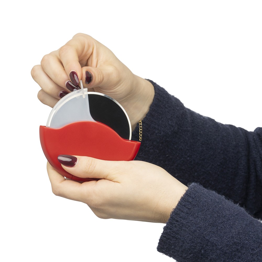 ABS és PP anyagból készült pizzavágó 430-as rozsdamentes acél pengével, kivehető védőborítással, amely könnyen felpattintható a tisztítás és a penge elérése érdekében. Újrahasznosított polietilén tasakba csomagolva. Emblémázás: Tamponnyomás