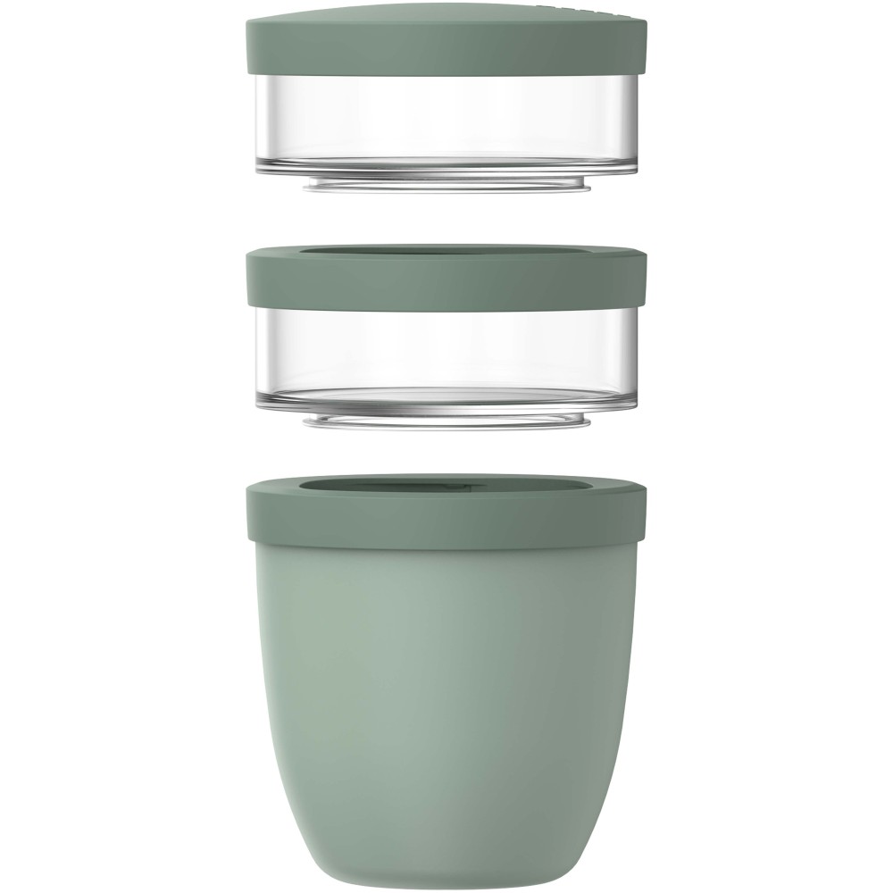Az Ellipse háromrészes ételtároló készlet három különálló rekesszel rendelkezik az összetevők elkülönített tárolásához. Minden tároló saját fedéllel van ellátva, ami megakadályozza az ízek és textúrák keveredését az étkezésig. Az eszköz 6-8 órán át melegen, vagy akár 12 órán keresztül hidegen tartja az ételt. A két felső, átlátszó tároló egyenként 200 ml, míg az alsó tartály 500 ml űrtartalommal bír. Tartós anyagokból készült, a külső felülete hűvös és száraz marad. A termék kézi mosogatása javasolt, a fedél műanyag alkatrészei mosogatógépben tisztíthatók. BPA-mentes.