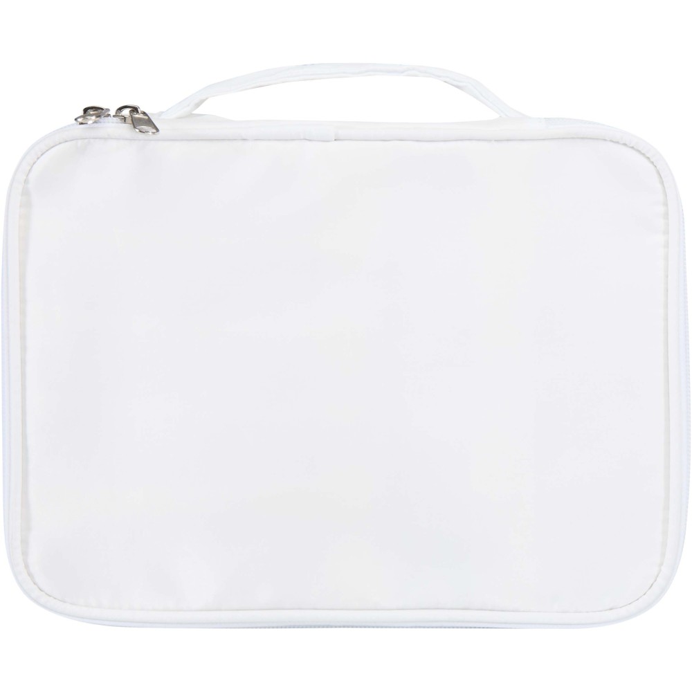 A Muse sminkrendező gondosan, tisztán és kompakt módon tárolja az ecseteket, púdereket, bőrápolókat és egyéb szépségápolási kellékeket. A GRS-tanúsítvánnyal rendelkező újrahasznosított poliészterből készült szervező ötvözi a praktikusságot a fenntarthatóbb anyagválasztással. Emblémázás: Szitanyomás