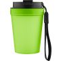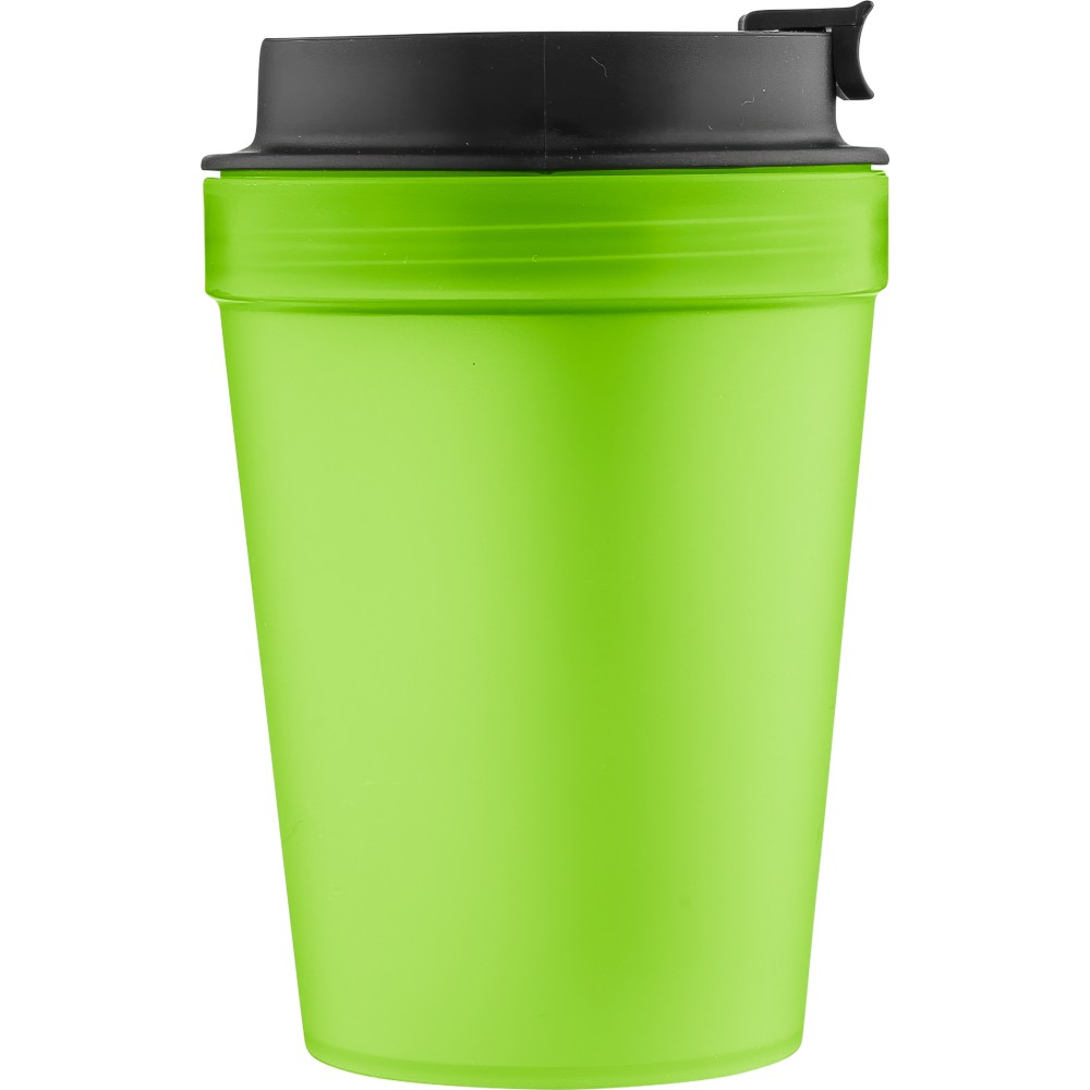 Átlátszó, szimplafalú ivópohár 350 ml-es űrtartalommal, vastagfalú kialakítással. Csavaros fedéllel és poliészter csuklópánttal rendelkezik a könnyű hordozhatóság érdekében. Tartós, ütésálló, megbízható termék. Meleg italokhoz is alkalmas, de kérjük, vegye figyelembe, hogy az egyfalú szerkezet miatt hőátadás előfordulhat.