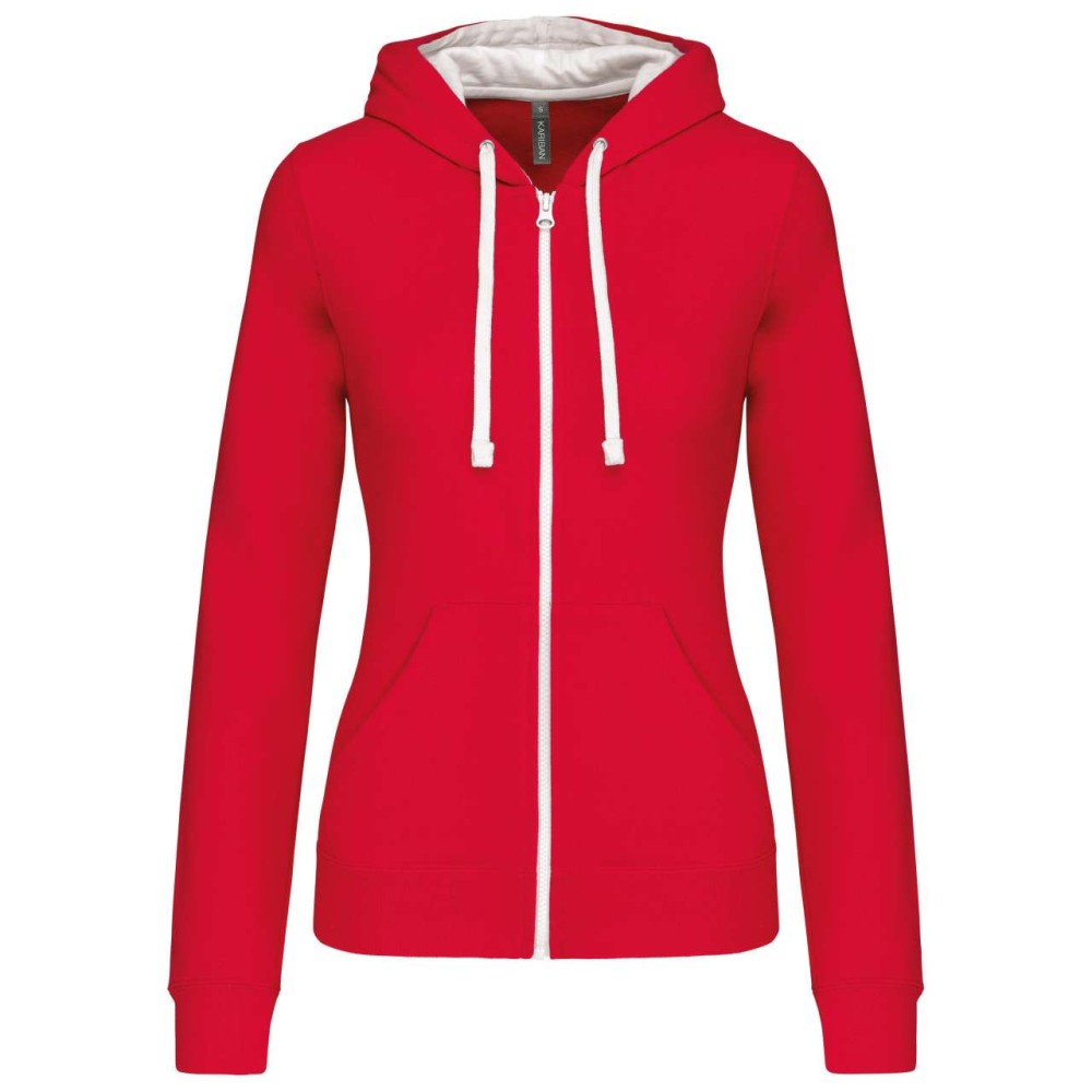 Kariban Contrast női kapucnis pulóver, Red/White