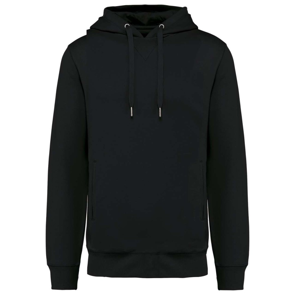 80% organikus pamut / 20% újrahasznosított poliészter. Oxford szürke 75% bio pamut / 25% újrahasznosított poliészter. Francia frottír LST (Low Shrinkage Terry). Szövet: enzimes mosás. Karcsúsított szabás. 2 elülső zseb. Bordázott kézelő, bordázott szegély és bélelt kapucni. Fém véggel ellátott húzózsinór. Félhold alakú kivitel a nyakkivágásnál, hogy megkönnyítse a díszítéshez való hozzáférést belülről. Twill szalagos nyak és V alakú betét a nyakkivágásnál. Nincs márkacímke a nyakon, csak méretcímke a dekorációhoz való könnyebb hozzáférés érdekében. OEKO-TEX N CQ1007/7 STANDARD 100 tanúsítvánnyal rendelkezik. IFTH. Emblémázás: Hímzés, Szitanyomás