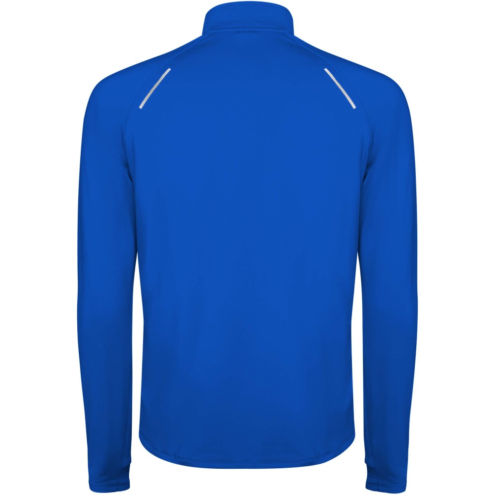 Férfi hosszúujjú technikai raglán pulóver. Gallér fordított félcipzárral, fényvisszaverő részletekkel. Erősített varrások. Mandzsetta hüvelykujj nyílással. Fényvisszaverő részletek a háton. A hátul enyhén hosszabb, mint elől. Meleg, bolyhos belső anyag. Emblémázás: Hímzés, Szitanyomás