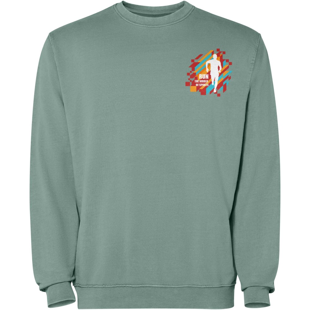 Uniszex pulóver savas mosással. 2x1 bordás gallér, kézelők és szegélyek tónusban. Megerősített tűzések a kézelőkön, a szegélyen, a deréknél és a karöltőben. Színben passzoló fedőöltés a nyaknál. 100% pamut kötés, 250 g/m2. Emblémázás: Hímzés, Szitanyomás