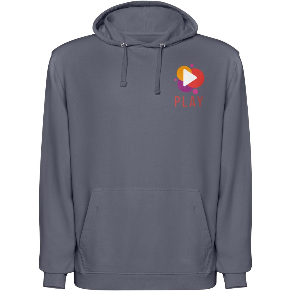 Koptatott (acid-wash) felületkezeléssel készült uniszex kapucnis pulóver, amely 2x1 bordás kötésű kézelőkkel és alsó szegéllyel készült. A kapucni színazonos single jersey bélést és passzoló lapos húzózsinórokat kapott, a nyakrésznél pedig esztétikus, színazonos fedőöltés található. A pulóver praktikus kenguruzsebbel rendelkezik a kényelmes használat érdekében. 100% pamut, 250 g/m2. Emblémázás: Hímzés, Szitanyomás