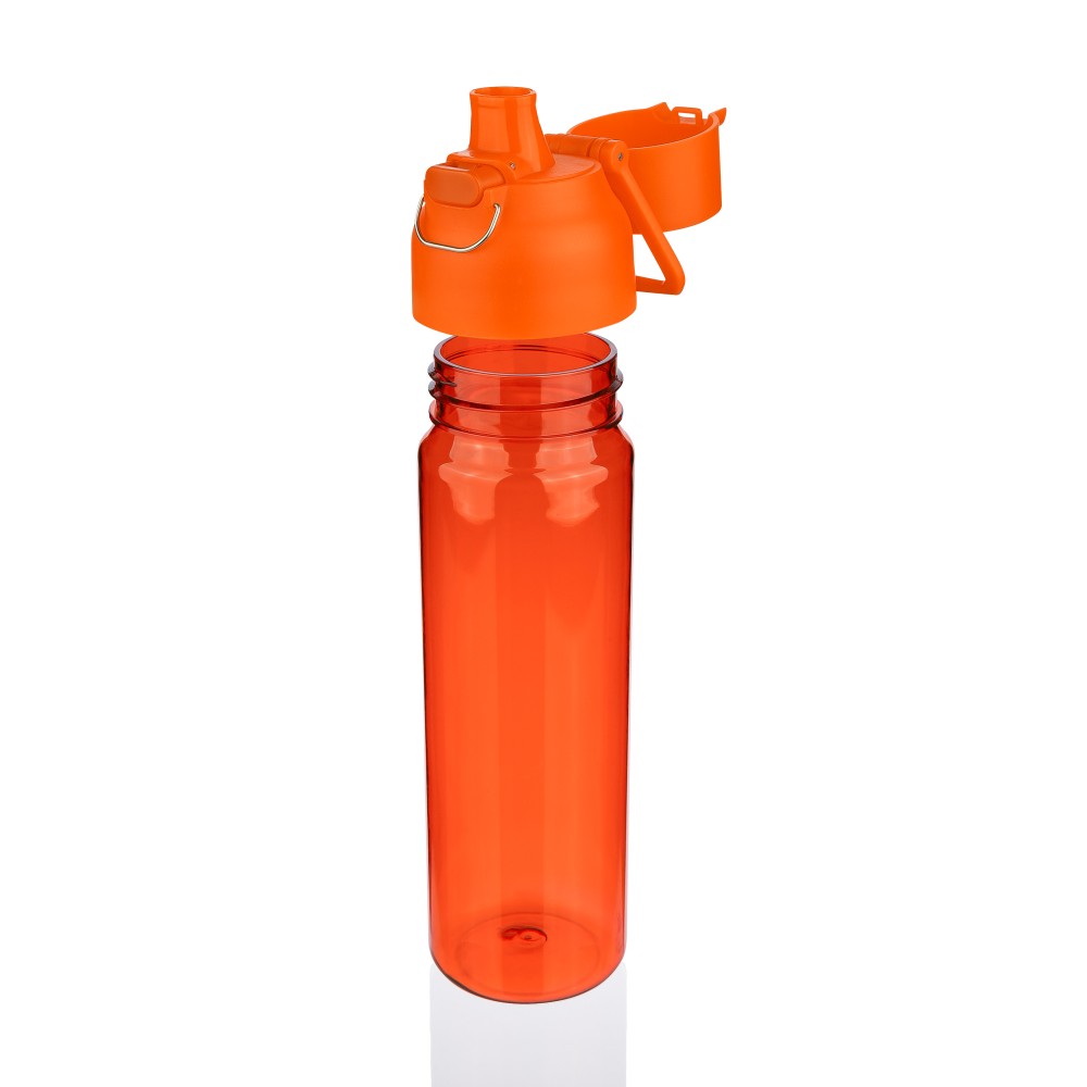 Tritán ivópalack 750 ml-es űrtartalommal, a kupakhoz illő színes palacktesttel. Tartós és könnyű anyagokból (PP) készült, amelyek ellenállnak a nedvességnek, a vegyszereknek és a mindennapi igénybevételnek. Nyomógombos zárral és felső hordozófogantyúval rendelkezik. Mindennapi használatra tervezve munkához, iskolához vagy szabadidős tevékenységekhez.