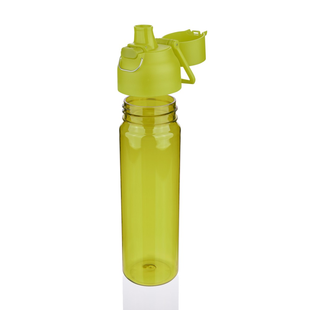 Tritán ivópalack 750 ml-es űrtartalommal, a kupakhoz illő színes palacktesttel. Tartós és könnyű anyagokból (PP) készült, amelyek ellenállnak a nedvességnek, a vegyszereknek és a mindennapi igénybevételnek. Nyomógombos zárral és felső hordozófogantyúval rendelkezik. Mindennapi használatra tervezve munkához, iskolához vagy szabadidős tevékenységekhez.