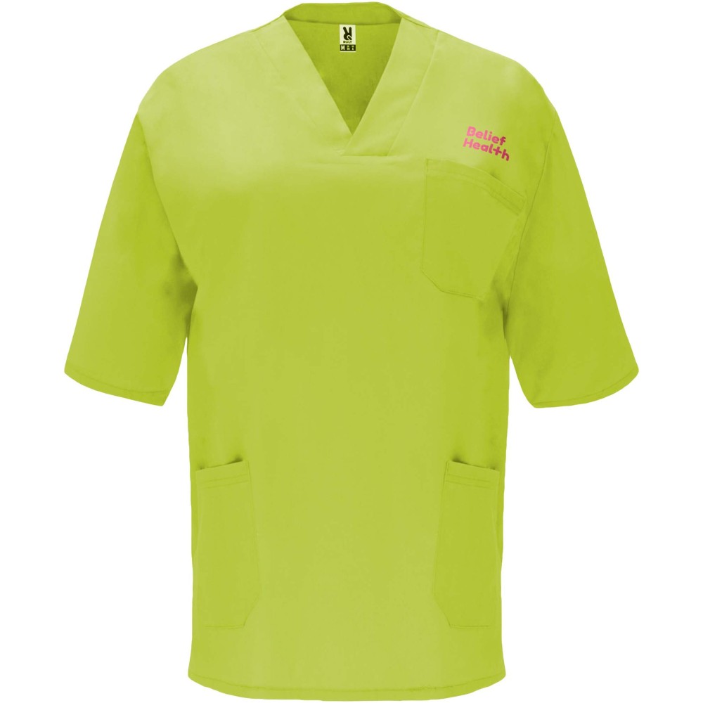 Rövid ujjú, unisex munkaruházati felső. Keresztirányú V-nyakkivágással, egy mellzsebbel és két oldalsó zsebbel rendelkezik. Az alsó szegélyen elhelyezett oldalsó hasítékok biztosítják a kényelmes viseletet.