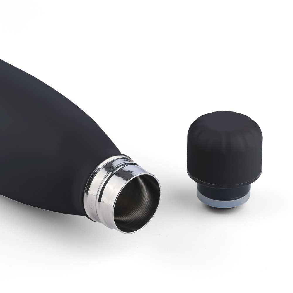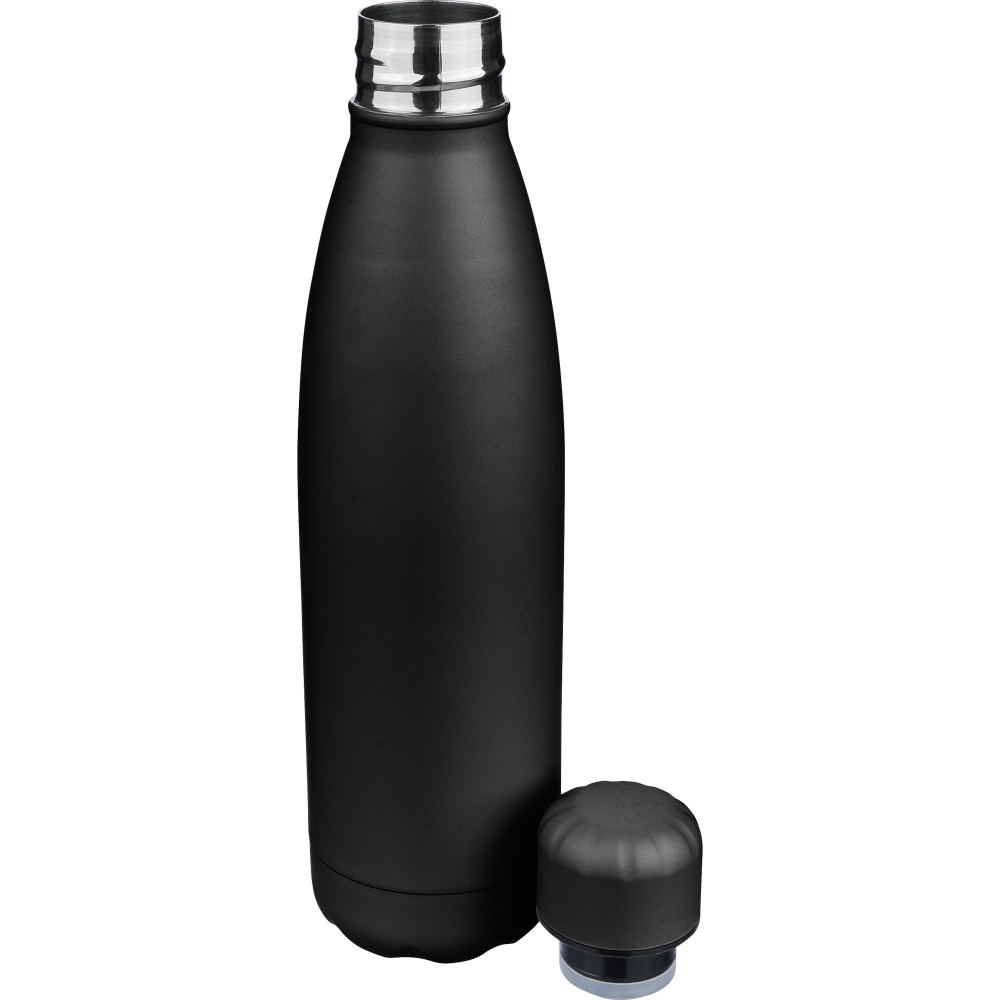 Újrahaszanosított, duplafalú ivópalack, 500 ml, fekete