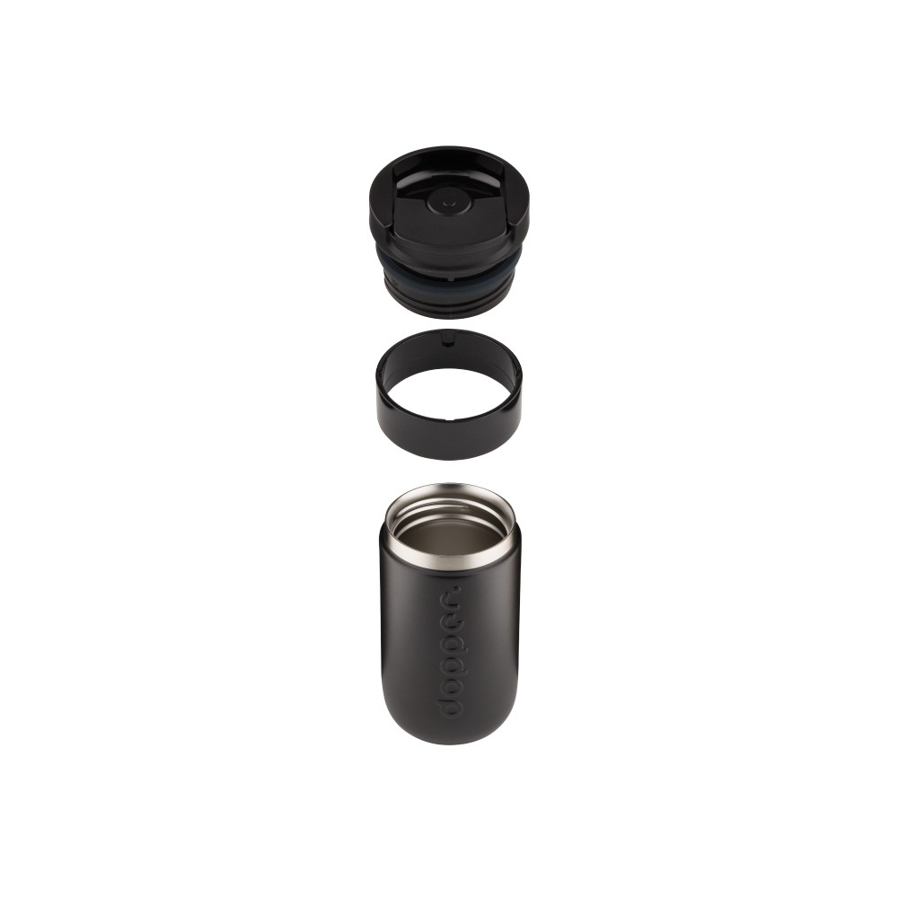 Legyen szó reggeli kávéról, napközbeni hidratálásról vagy egy esti szénsavas italról, ezt a Dopper Travel Mug-ot úgy tervezték, hogy mindenre alkalmas legyen. A meleg italokat akár 6 órán át melegen, a hideg italokat pedig 20 órán át hűvösen tartja. Duplafalú, 90%-ban újrahasznosított rozsdamentes acél testtel és tartós bevonattal készült. A könnyen nyitható, lepattintható kupak egyszerűvé és kényelmessé teszi a használatot útközben is. Mosogatógépben (emblémázás nélkül) 65 °C-ig tisztítható. Kérjük, vegye figyelembe, hogy kávé vagy tea használata esetén elszíneződés vagy szagmaradvány előfordulhat. Forró italok fogyasztásakor járjon el óvatosan!