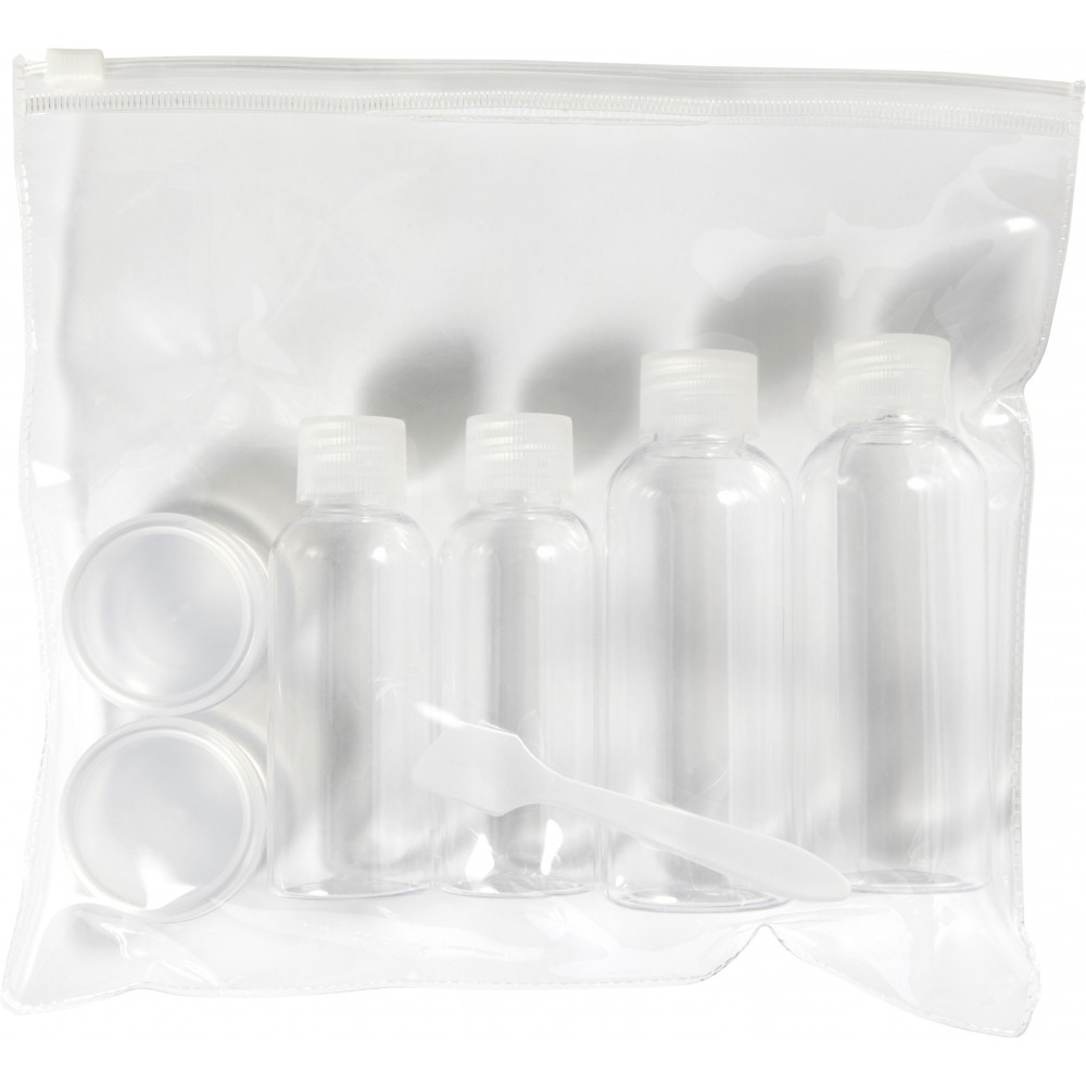Tartalma: 2 db 100 ml-es, 2 db 50 ml-es és 2 db 10 ml-es flakon. PETG. Emblémázás: Szitanyomás, Tamponnyomás, UV nyomtatás