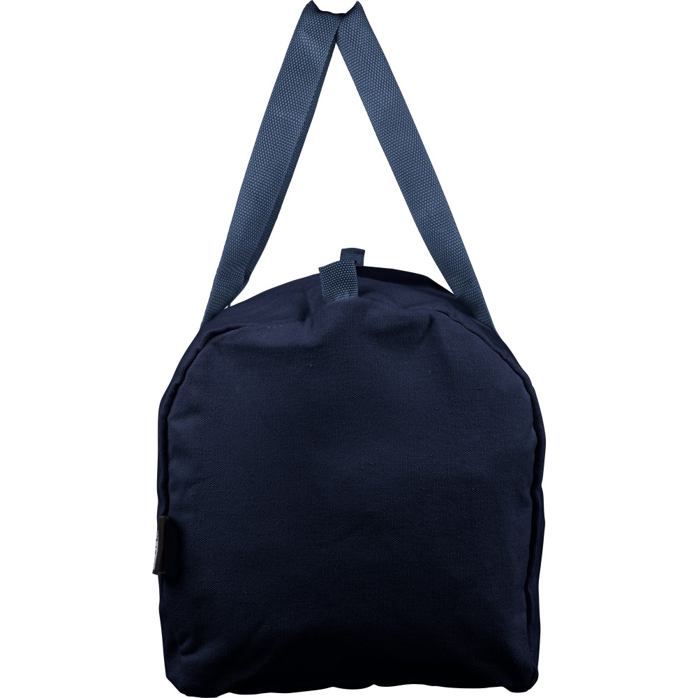 Újrahasznosított pamut-poliészter, 330 g/m2 kevertszövetből készült sporttáska nagy, cipzáras felső rekesszel, 100 cm hosszúságú és 3 cm szélességű hosszú fülekkel, a táska színével megegyező hevederrel. Megközelítőleg 30 literes űrtartalommal rendelkezik. A külső felületen rPET címkével, a belső részben újrahasznosított alapanyagra utaló címkével ellátva. Emblémázás: Szitanyomás