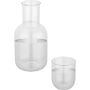 Letisztult megjelenésű, 850 ml-es üvegkancsó hozzáillő, 200 ml-es üvegpohárral. A szett ideális víz, üdítők vagy egyéb italok felszolgálásához. Az elegáns és kompakt kialakításnak köszönhetően esztétikus kiegészítője lehet az étkezőasztalnak vagy az irodai íróasztalnak egyaránt. A termékek kiváló minőségű üvegből készültek a tisztaság és a tartósság érdekében. Emblémázás: Bögredekor