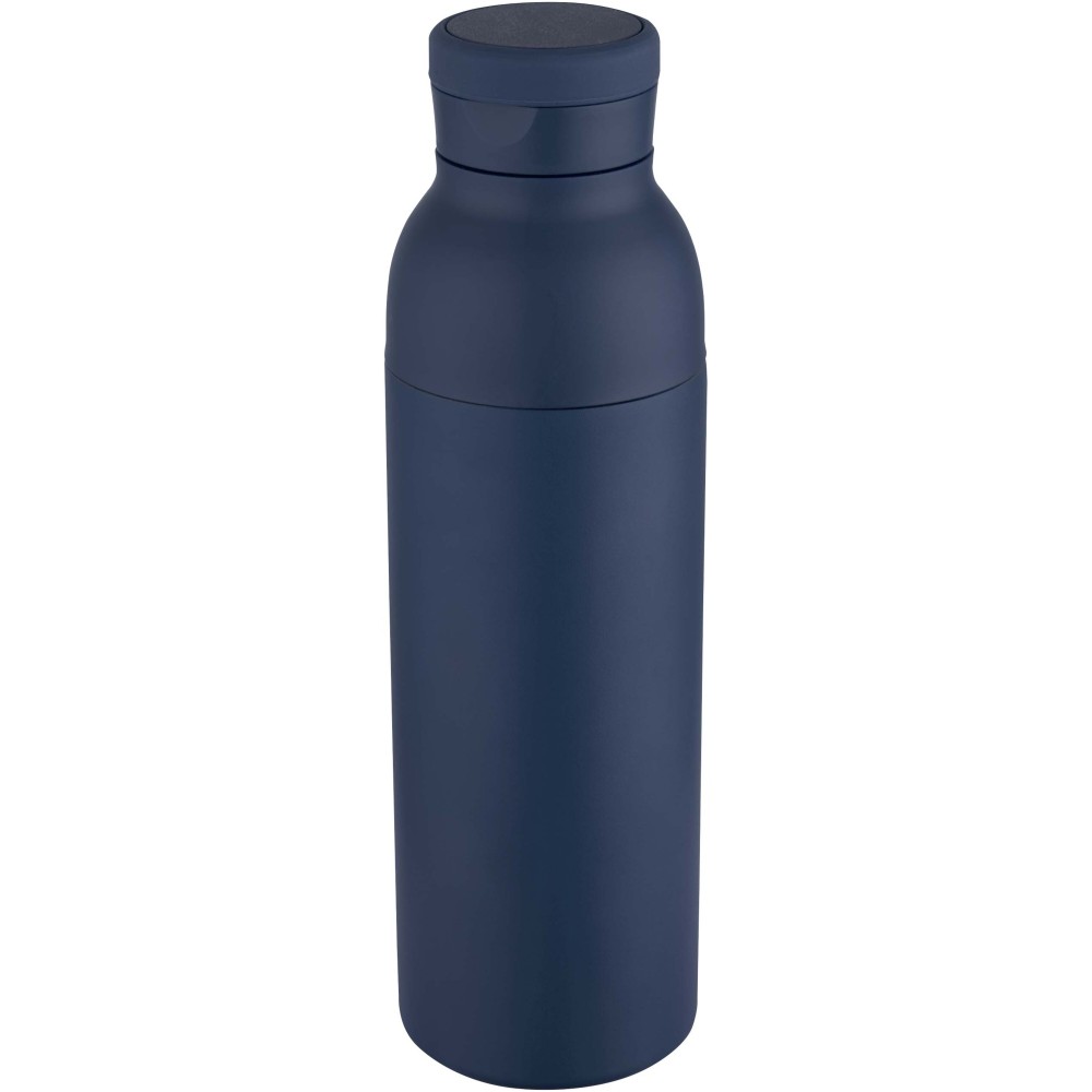 RCS tanúsítvánnyal rendelkező rozsdamentes acélból készült, duplafalú, vákuumszigetelt palack, amelynek fedelén egy diszkrét, beépített szilikon fogantyú található. Az italokat 48 órán át hidegen, vagy akár 12 órán keresztül melegen tartja. A két részből álló konstrukció megkönnyíti a tisztítást, míg a tartós porszórt bevonat és a belső rézszigetelés hosszú élettartamot és kiváló hőtartást biztosít. A terméket újrahasznosított kartonból készült ajándékdobozban szállítjuk. Űrtartalma: 650 ml.