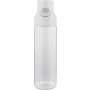 Tritán vizespalack 750 ml-es űrtartalommal, átlátszó palacktesttel és színes kupakkal. Tartós és könnyű anyagokból (PP) készült, amelyek ellenállnak a nedvességnek, a vegyszereknek és a mindennapi igénybevételnek. Mindennapi használatra tervezve; biztonságos nyomógombos zárral és felső hordozófogantyúval rendelkezik. Alkalmas munkához, iskolához vagy szabadtéri tevékenységekhez.
